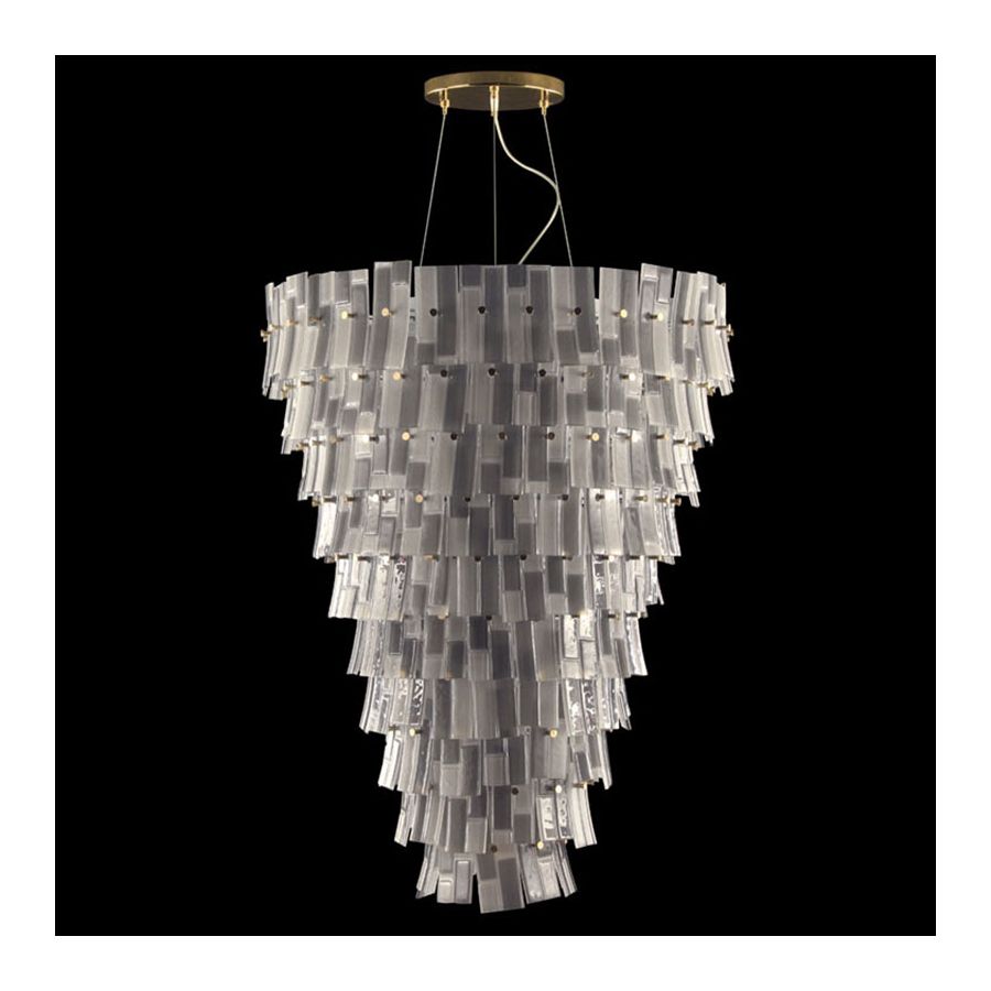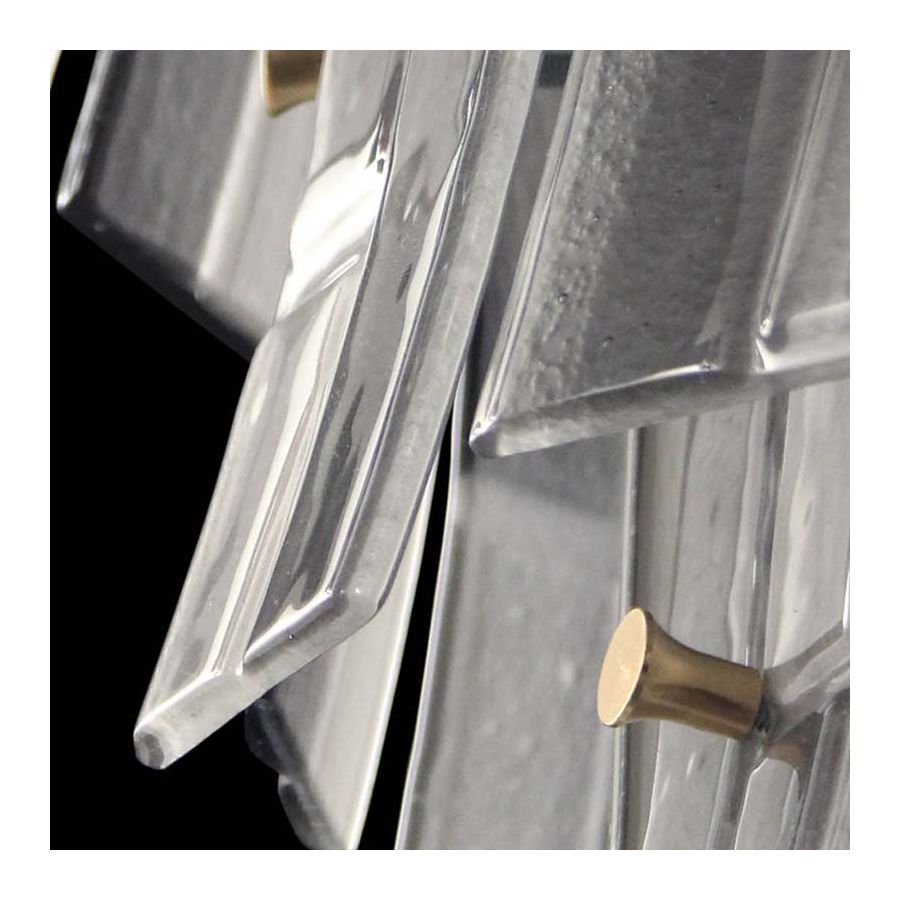 The modern style glass chandelier Chimera is our tribute to the design of the 60’s and its typical creative patterns. This lighting work is composed of modular elements: glass listels in the tones of grey, handcrafted using a combination of different techniques, are fixed on the structure with chromed screws.