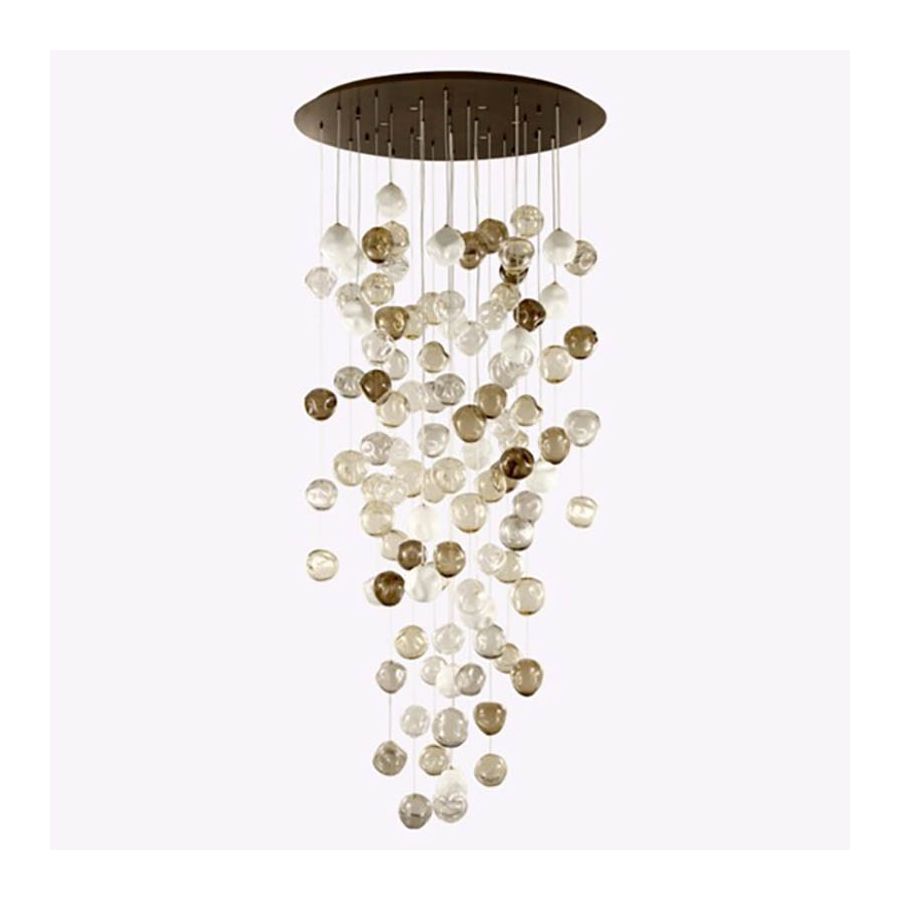 Murano hand-blown glass is a material that can be easily customized in a vast range of different colours: the spheres of Desafinado can be therefore realised in many other colours. Desafinado is a creation characterised by great dimensions, but it is also lightweight. Its height of almost 2,5 meters makes it ideal to furnish staircases of public buildings and of great hotels.
