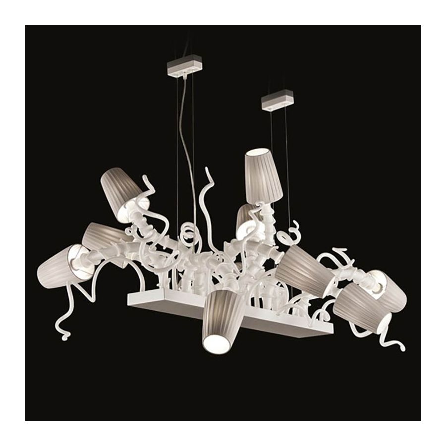 This lamp characterized by surreal shapes that comes out from the central metal structure and intertwine each other as if they were living tentacles.