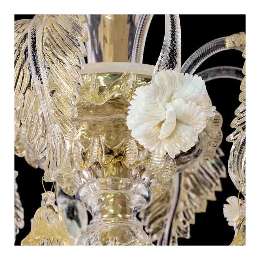 There are all sort of decorations: “cornucopie”, “pinnacoli”, pendant elements, etc. Among these, the delicate flowers in white and pure gold are the most standingout.