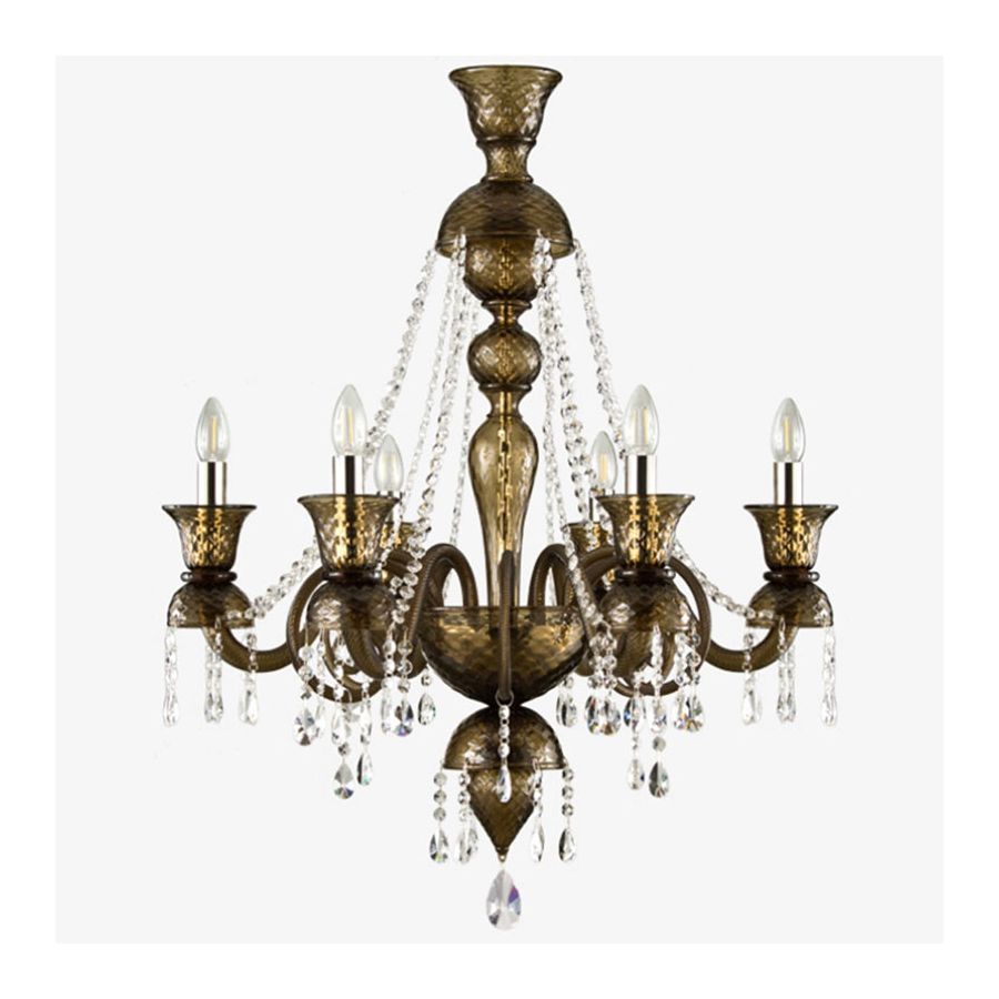 | Finish: | Dark smoky glass with blown glass scrolls and crystal garlands |