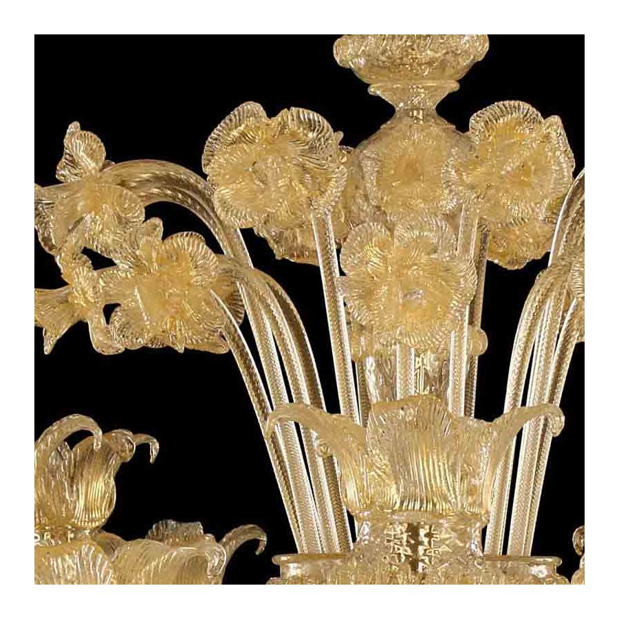 The peculiar elements of this collection are undoubtedly the cups, to which have been attached a series of tiny leaves. This is a typical traditional Murano glass lighting work, manufactured using some techniques that only a skilled master glass-worker can carry out.