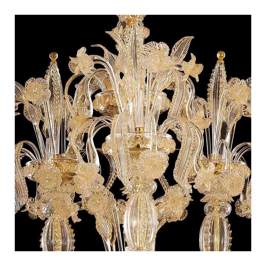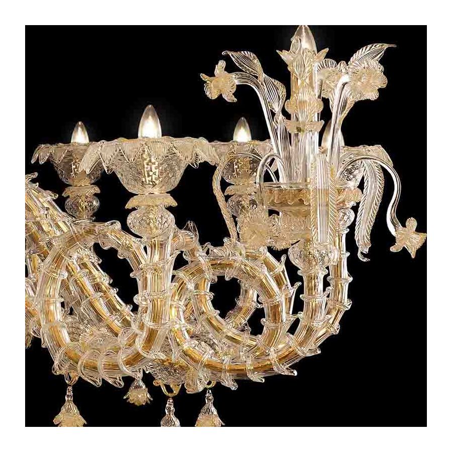 At the end of the arms, the cups have been enriched with majestic decorations, called “trionfi”. Each of these “trionfi” is formed by flowers, leaves and pendant elements; the cups have been handcrafted with care by our masters glass-worker.