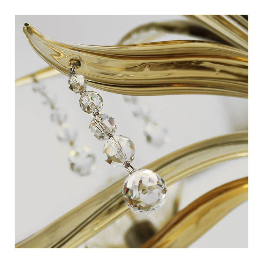 The luxury chandelier Tresor has been conceived as a jewel-like chandelier, it is the perfect solution to embellish spaces. It has been designed with attention to details: the smooth blown glass of extremely high quality is interrupted by some large Swarovski® crystal elements, and the metal shiny structure (in gold or nickel) is visible trhough the glass.