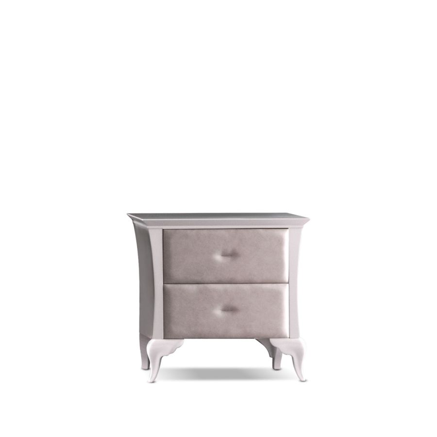 Alice is an ideal collection based on the combination of classic and traditional symbols with modern design. Elegance, dynamism characterize an archetype with harmonious proportions and soft shapes. The bedside table with two drawers in the “Soft” version have padded fronts covered in leather or eco-leather and legs in cast aluminum The elegance of the push-pull-opening drawers is underlined by the delicate stitching in place of the handle. An exclusive object that will amaze you with its countless combinations between decoration of the structure and coating of the fronts.