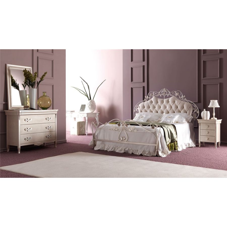 Wooden bedside table with small drawer and shelf or with three drawers and a secretaire drawer from the same collection, creates a bedroom environment with a delicate and elegant style.