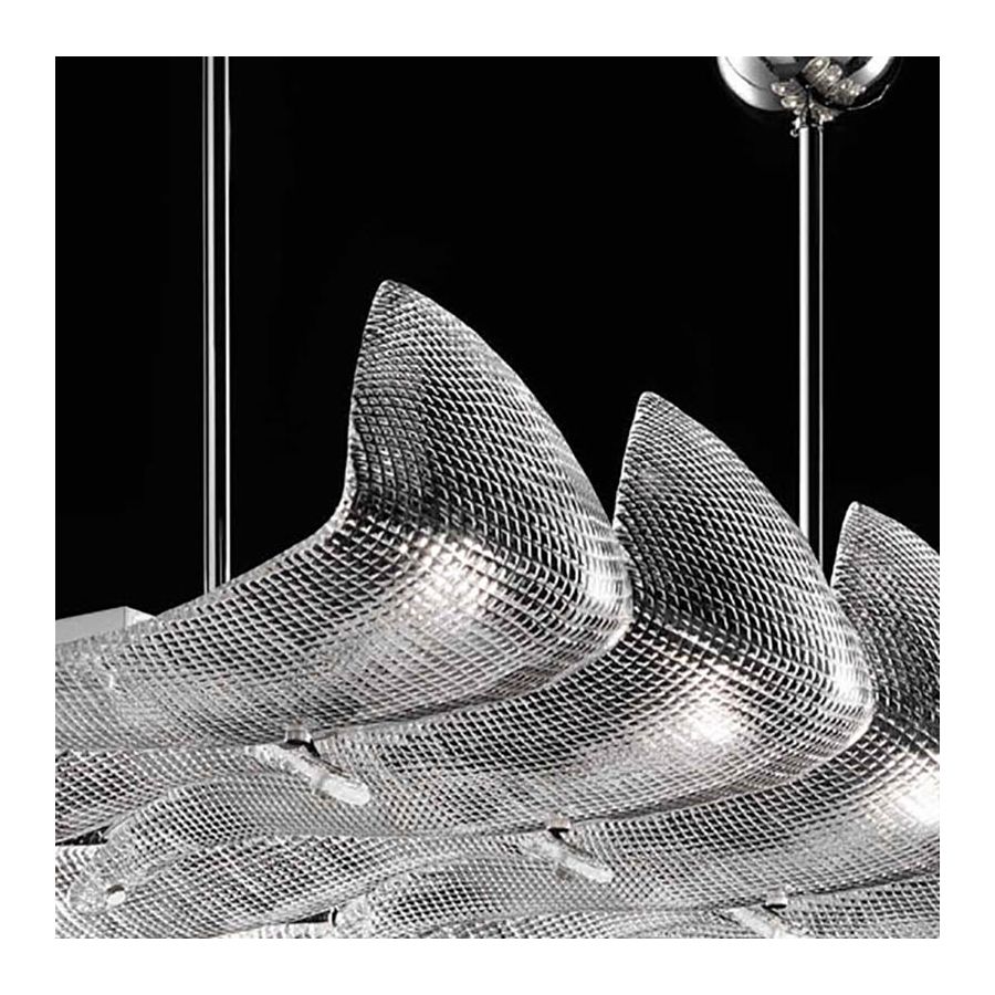 Precious installations in murano glass, individually forged hand made by glass masters. The harmonious modern sculpture forms, the refined work, the beautiful effects of light render the large linear chandelier Naga 2 an ideal solution for any environment.