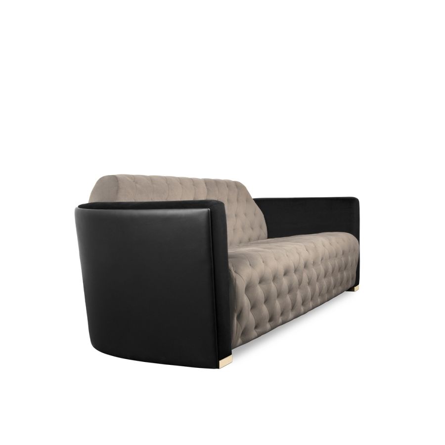 The Navis Sofa combines the strength of an era with modern comfort to create a bold yet elegant piece. Luxuriously crafted with velvet, leather, and polished brass accents, this sofa offers a discreet yet sumptuous contrast that adds sophistication to any living room design.