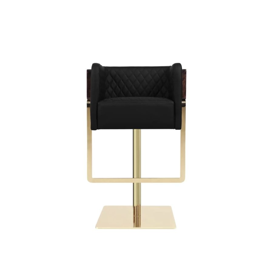 Featuring a uniquely shaped backrest, the Nura Swivel Bar Chair embodies the perfect blend of comfort and luxury. With its swivel feature, this chair offers exclusive style and exceptional comfort. Crafted from leather, brass, and wood, it adds a touch of glam and coziness to high-end bars seeking a sophisticated ambiance.