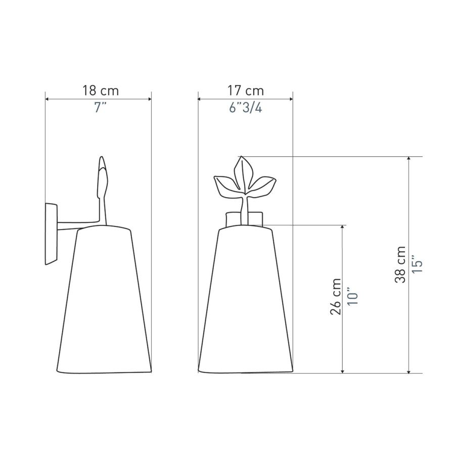 Width: 17 cm, Projection: 18 cm, Maximum: 60 w, Les Abat-jours peuvent être fabriqués dans 18 coloris au choix, The colour for the shades can be chosen out to 18 different hues