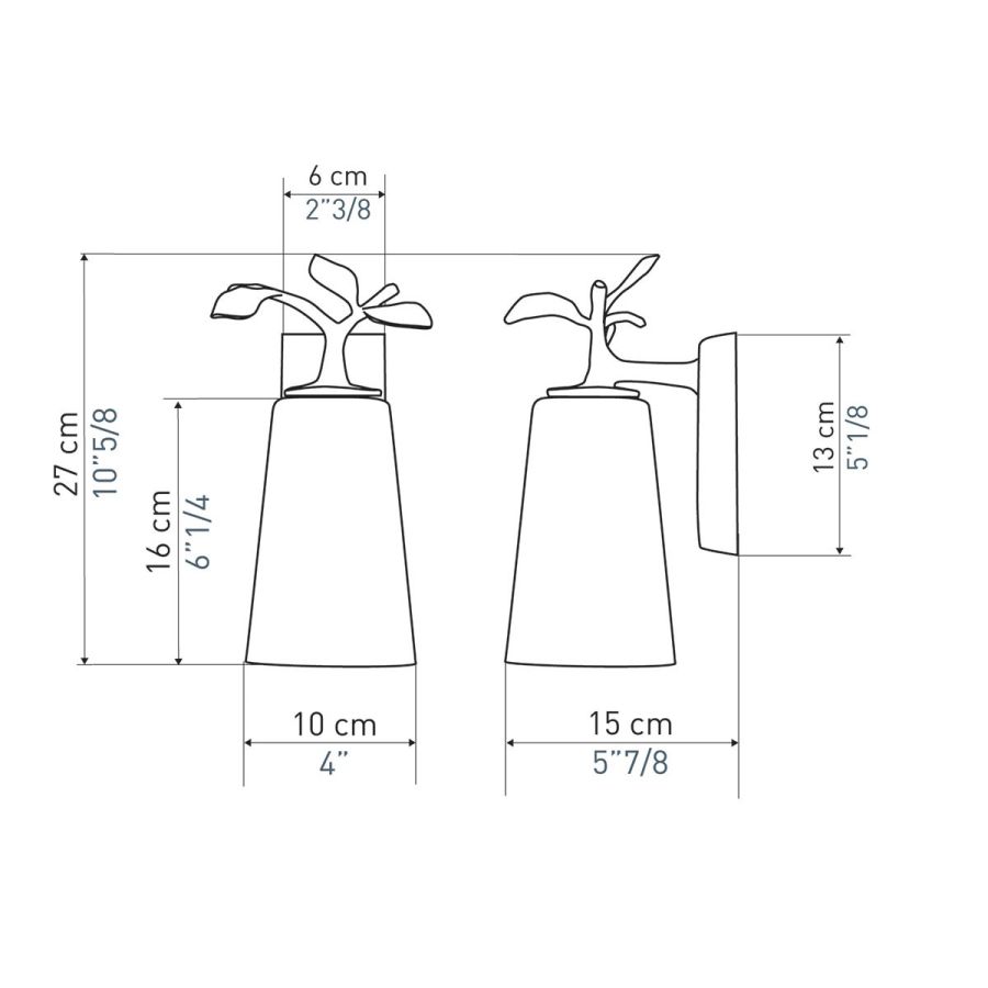 Width: 10 cm, Projection: 15 cm, Maximum: 40 w, Les Abat-jours peuvent être fabriqués dans 18 coloris au choix, The colour for the shades can be chosen out to 18 different hues