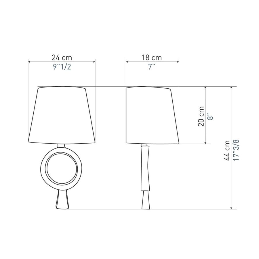 Width: 24 cm, Projection: 18 cm, Maximum: 100 w, Les Abat-jours peuvent être fabriqués dans 18 coloris au choix, The colour for the shades can be chosen out to 18 different hues