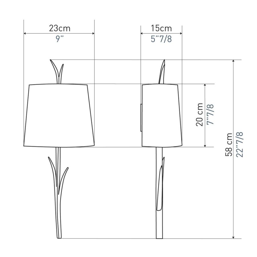 Width: 23 cm, Projection: 15 cm, Maximum: 2 x 40 w, Les Abat-jours peuvent être fabriqués dans 18 coloris au choix, The colour for the shades can be chosen out to 18 different hues