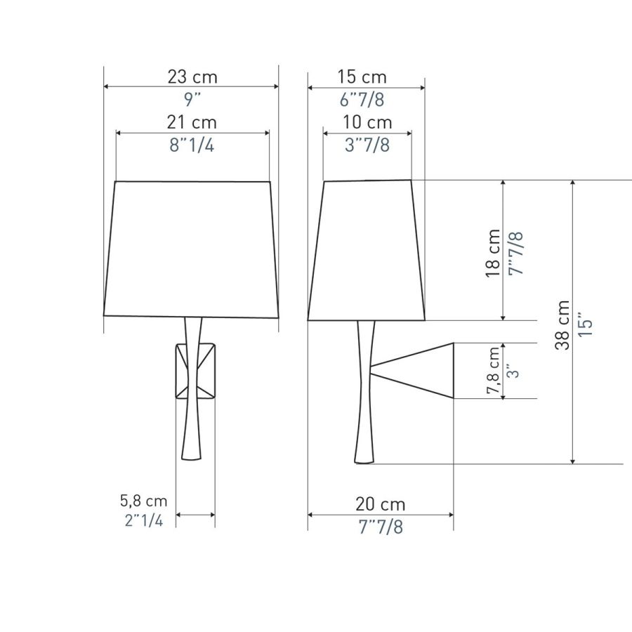 Width: 23 cm, Projection: 20 cm, Maximum: 100 w, Les Abat-jours peuvent être fabriqués dans 18 coloris au choix, The colour for the shades can be chosen out to 18 different hues