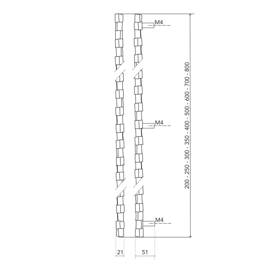 200 mm – 250 mm – 300 mm – 350 mm – 400 mm – 500 mm – 600 mm – 700 mm – 800 mm