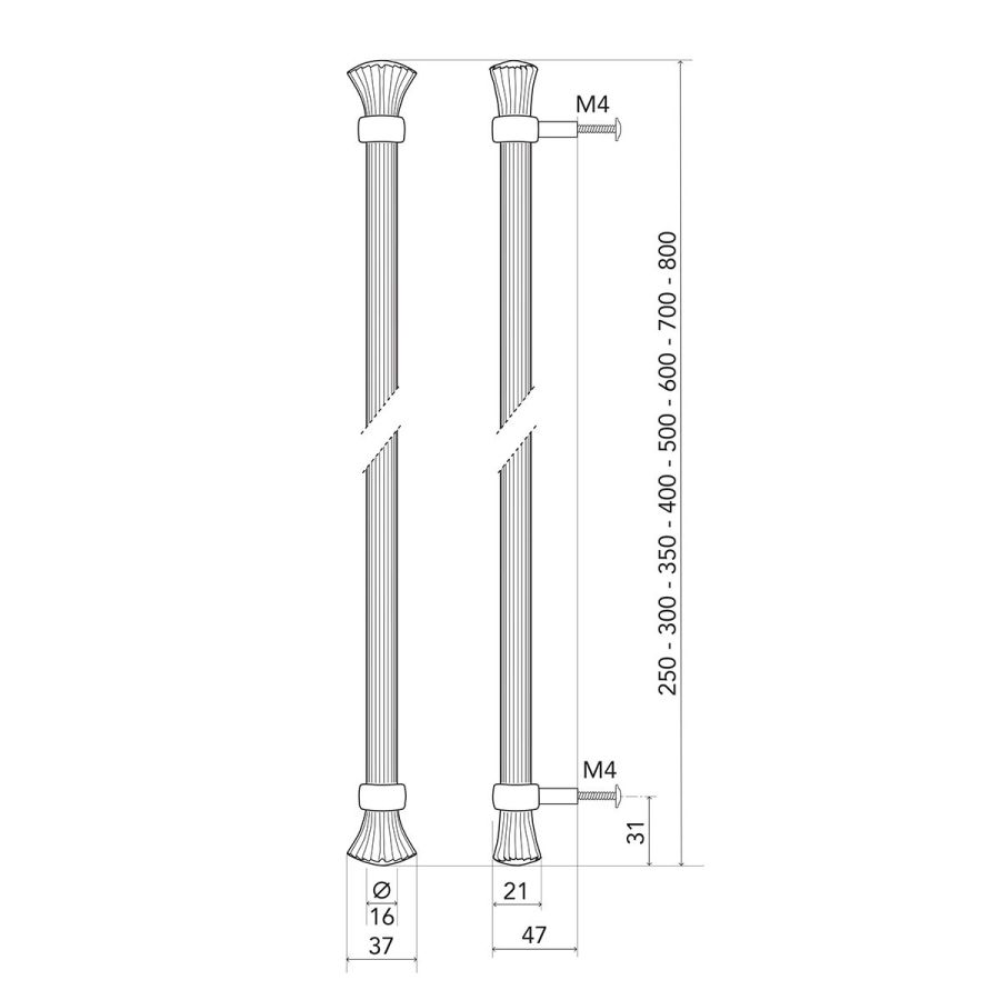 250 mm – 300 mm – 350 mm – 400 mm – 500 mm – 600 mm – 700 mm – 800 mm