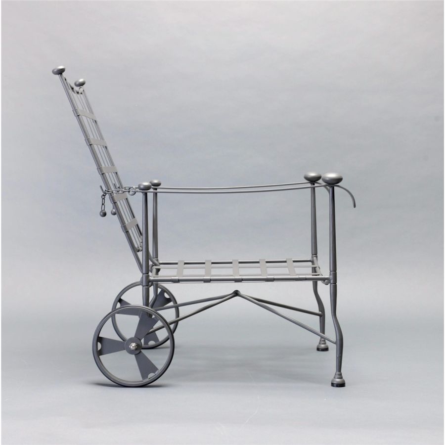AISI 304 stainless steel armchair with wheels and reclinable backrest, with cushions in Sunbrella Nattè Col.Nature included, powder-coated.
