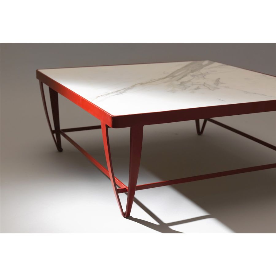 Square coffee table inAISI 304 with Statuario marble top, powder-coated. Design by: OFFICINACIANI & Studio63