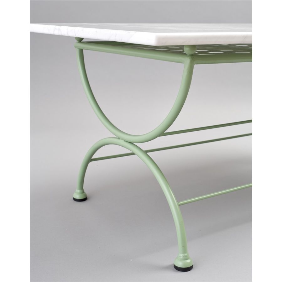AISI 304 rectangular coffee table with marble glass, powder-coated.