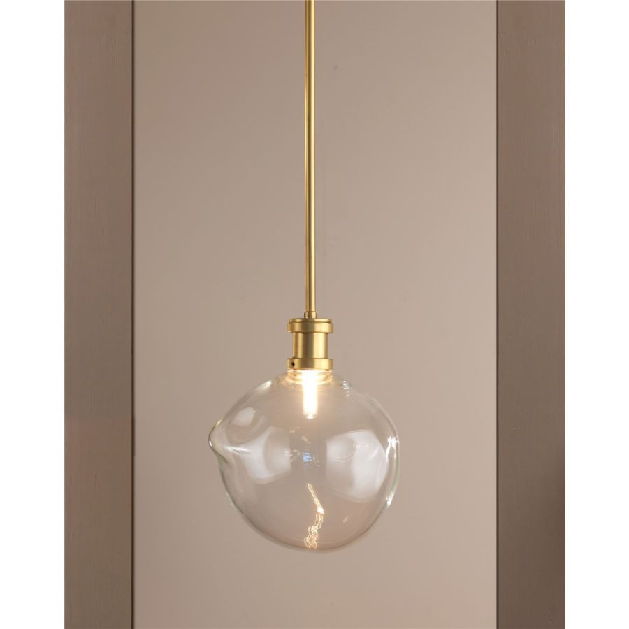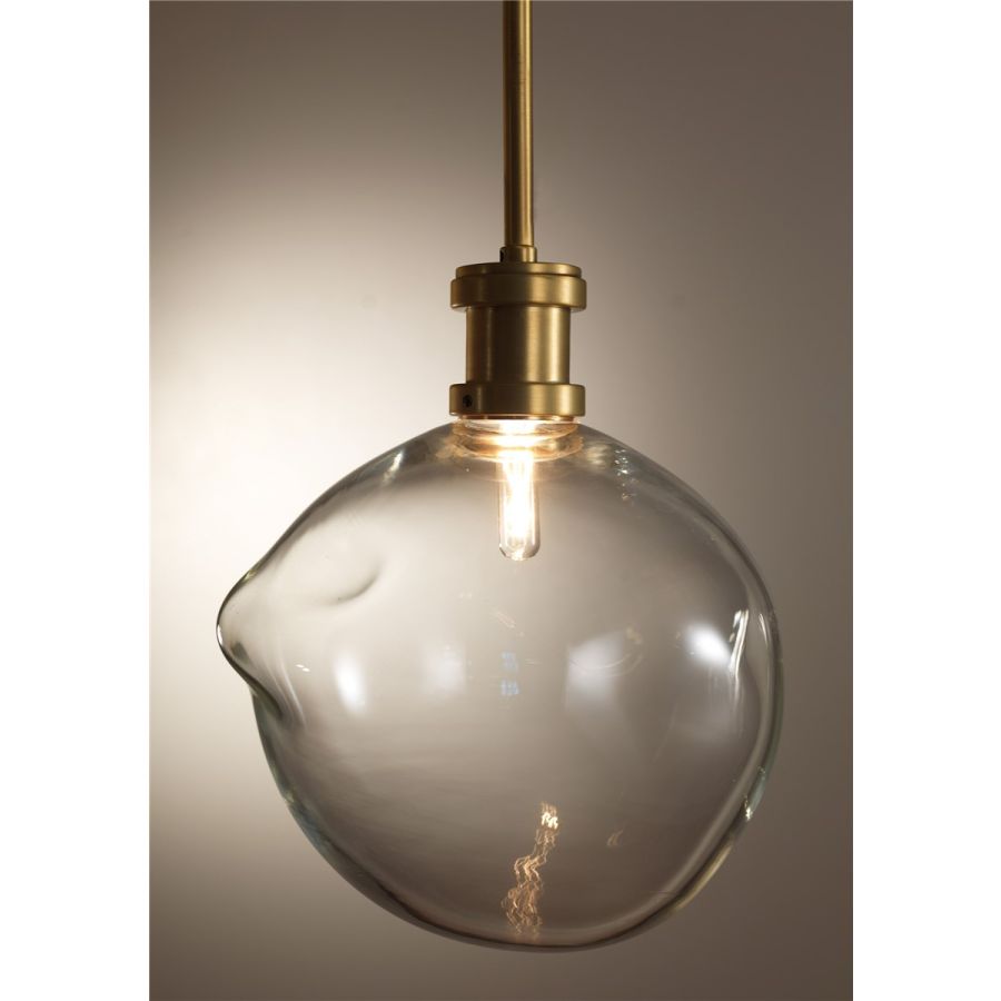 Suspension with brass attack and bubble in Murano glass. Designed by: OfficinaCiani & Ciarmoli Queda Studio