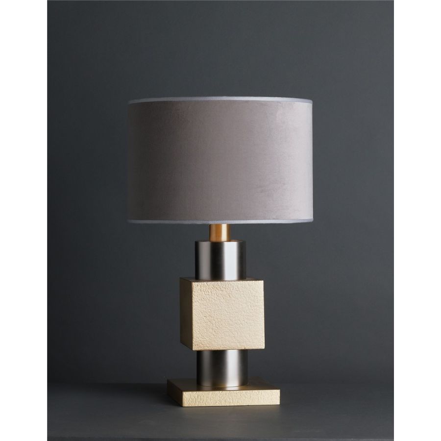 Bordslampa i mässing med dekorerad “knut”, cylindrisk lampskärm Ljuskälla : 1L. x 60w E27 Designad av: OfficinaCiani & Ciarmoli Queda Studio