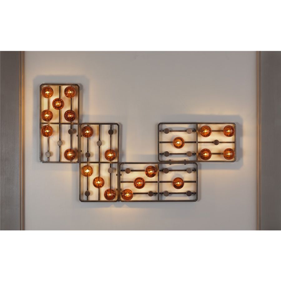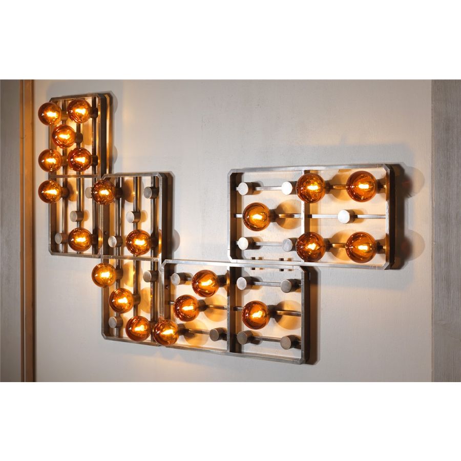 Mässing modulär vägglampa “Domino” med bärnstensglas sfärer Ljus : Alog. G9 variabelt antal