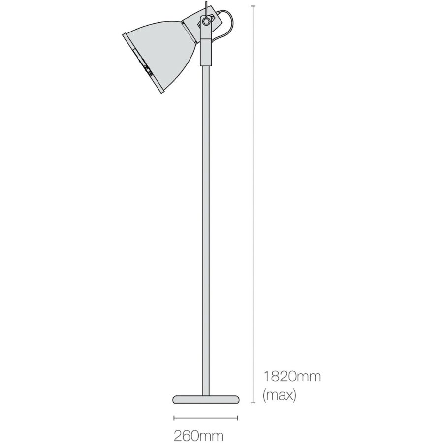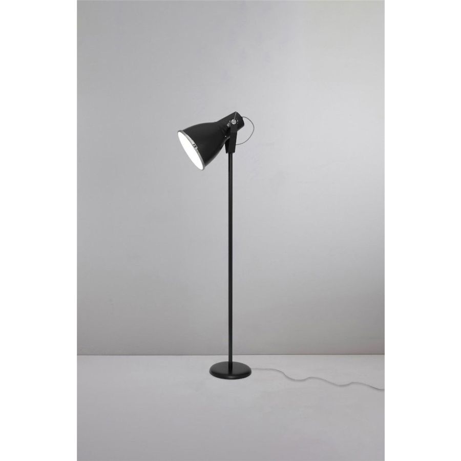 Inspired by the searchlight on the back of a toy lorry, the Stirrup collection is the ultimate in industrial chic. The freestanding floor light has an adjustable shade and frosted glass visor to prevent glare and provide a softer, more diffused light. Available in natural aluminium, black and white.