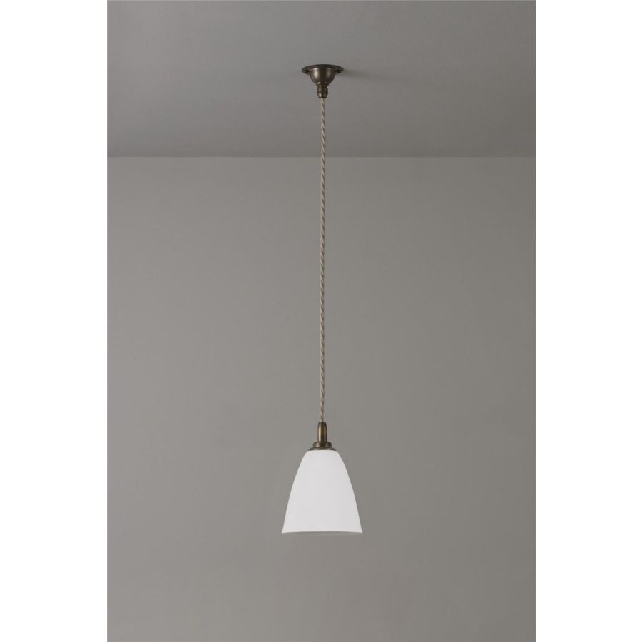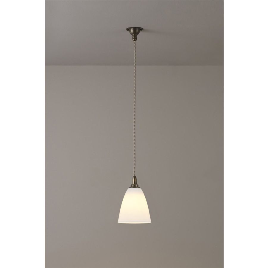 A beautifully simple collection of antique brass pendants, choose from 6 of our classic bone china shades in a matt finish, combined with a traditional twisted braided cable. These pendants work well on their own to provide light where is needed but for impact and to make a statement why not go for all 6 hung at different heights over a dining table or kitchen island.