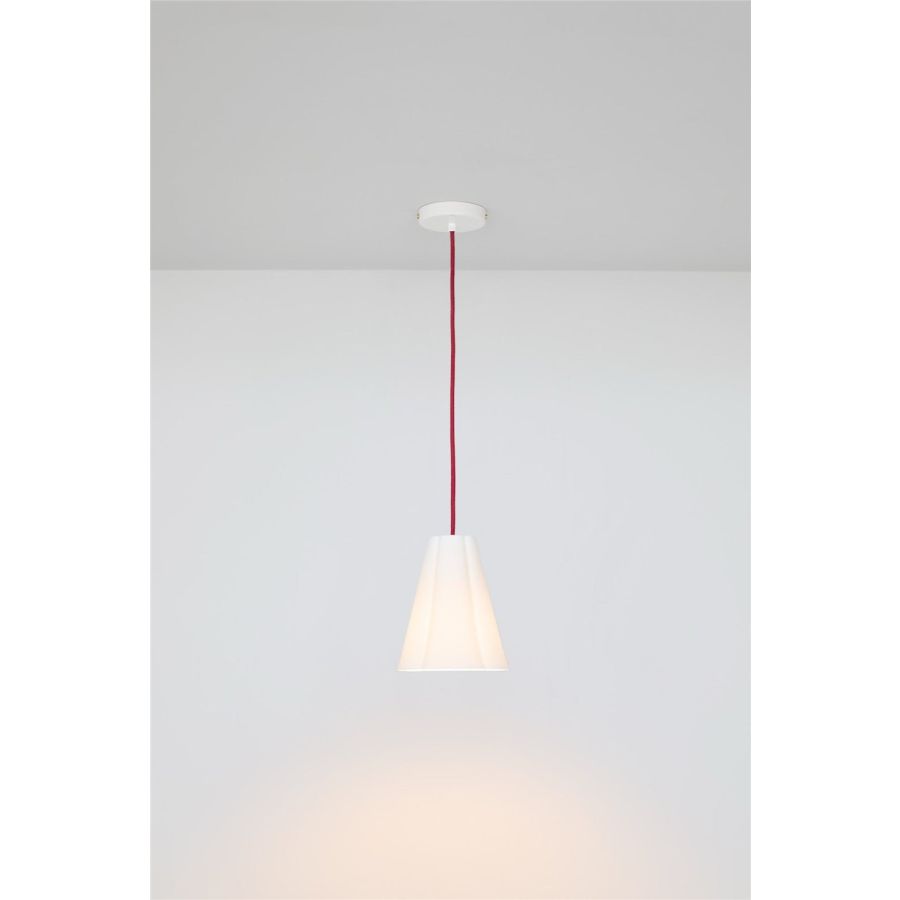Floral inspirations meet fine lines: the Blossom Pendants elegantly enhance rooms, providing functional as well as indirect lighting. Inspired by the Plum blossom, the design of the handmade bone china shade combines poetic details with a clean, sculptural presence. From its petal-shaped top, it gently tapers out, casting a circle of light below.