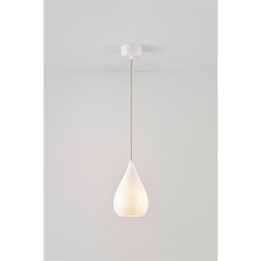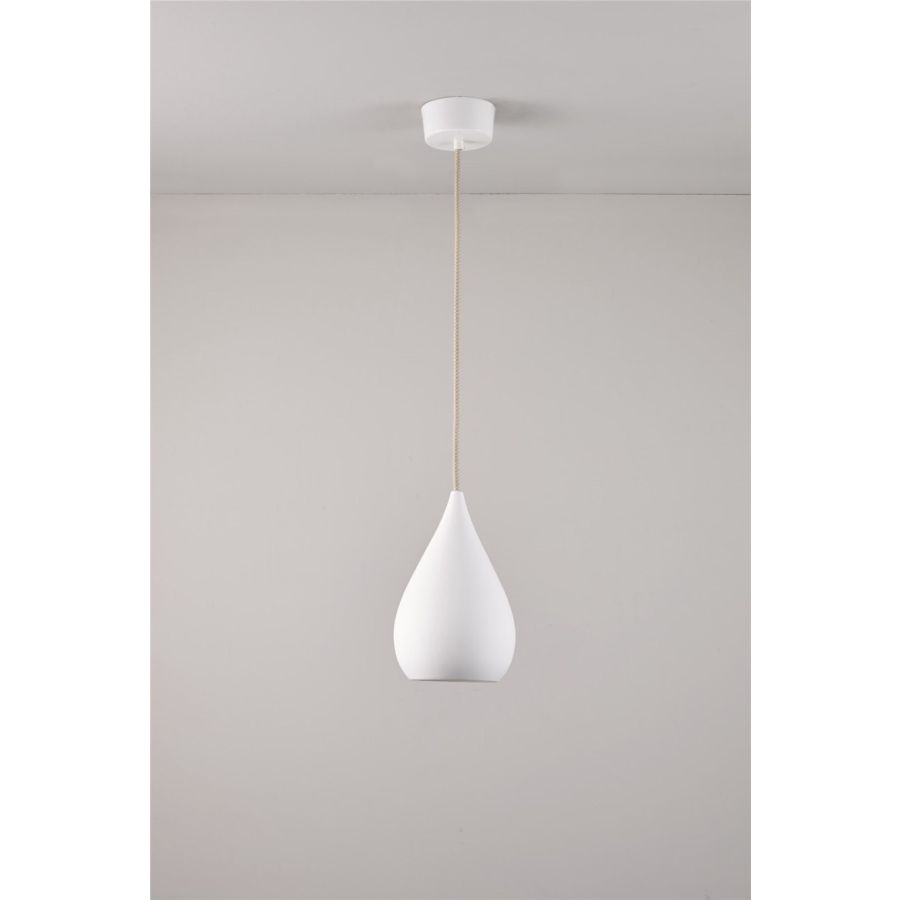 The Drop One Pendant has a classical cone shape and is available in different sizes. The bone china shade provides an elegantly simple central lighting source. Choose between a natural white shade with a gloss or matt finish, or black with a gloss finish.
