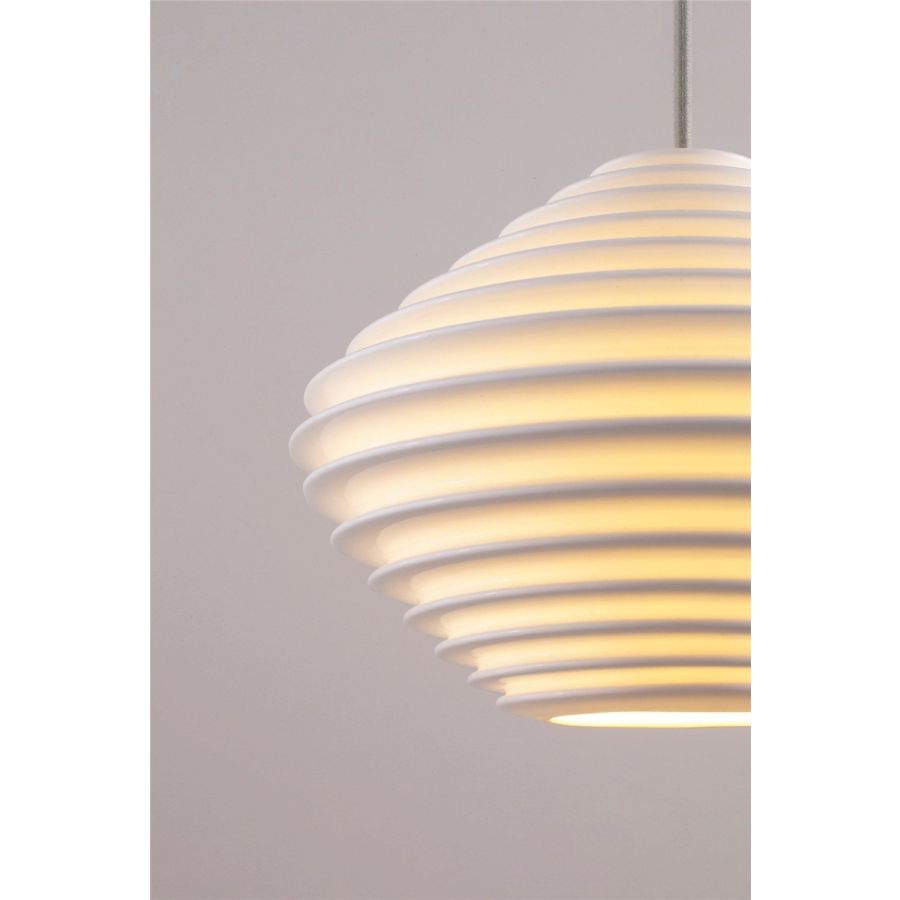 A new direction for the Fin collection that holds equal elegance. Its intricate bone china shade has been inspired by organic forms that, when lit, cleverly accentuates the inherent beauty of its material. Suspended by our trademark cotton braided cable, the Horizontal Fin makes a striking feature in any interior - particularly when combined in multiples of three.