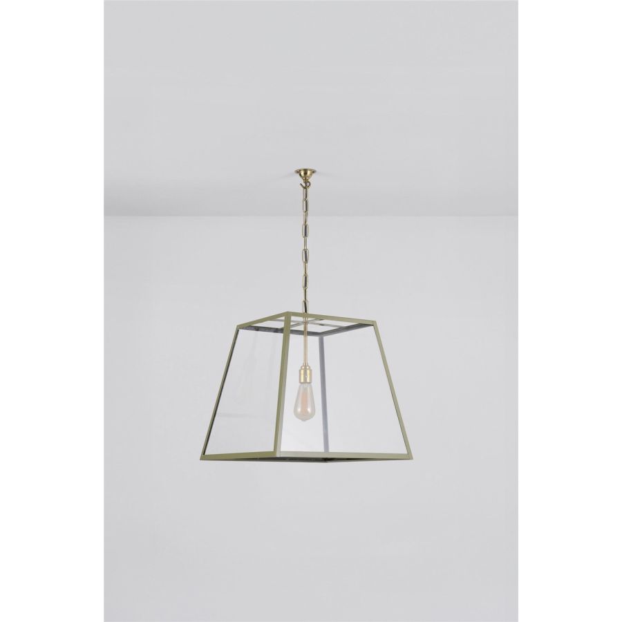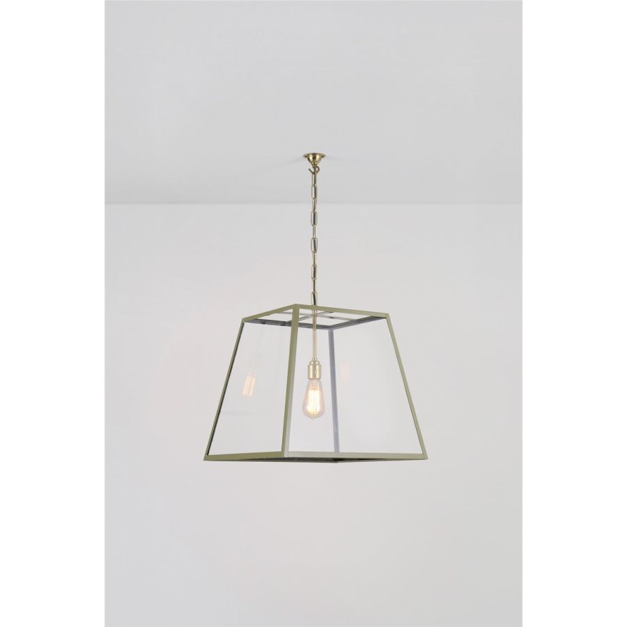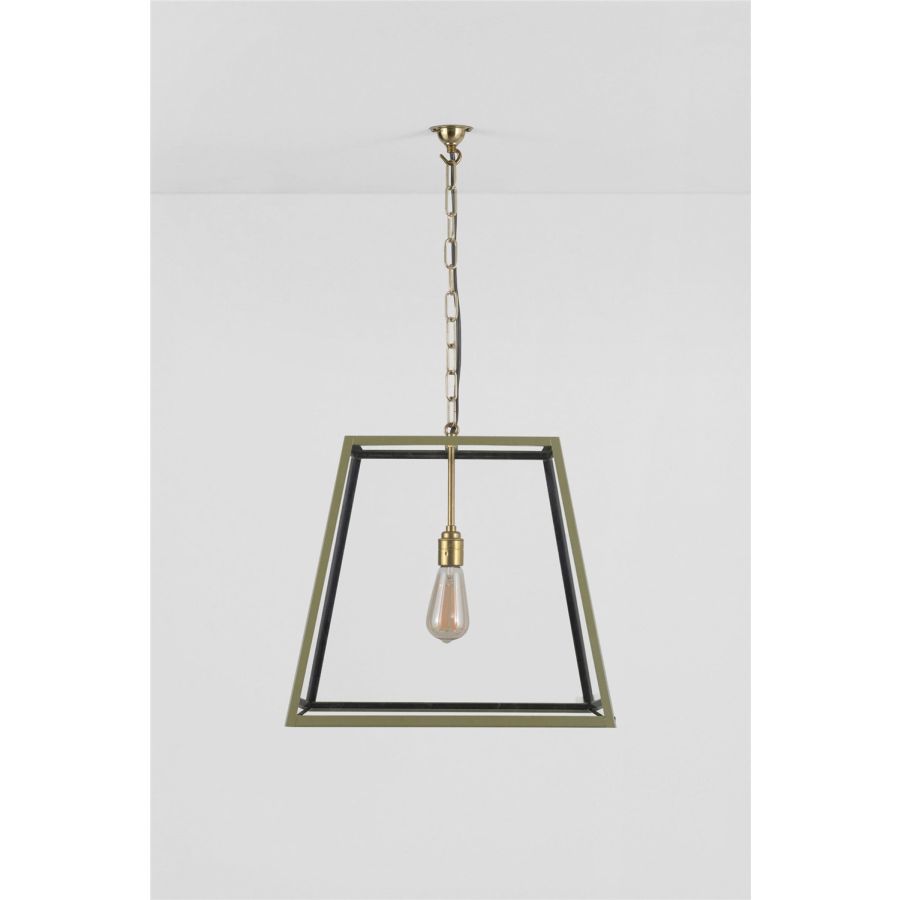 Davey's classic Quad Pendant available in an olive green combined with polished brass metal work, perfect if you are wanting the classic feel but want to inject a little colour. Available in small, medium, and large sizes.