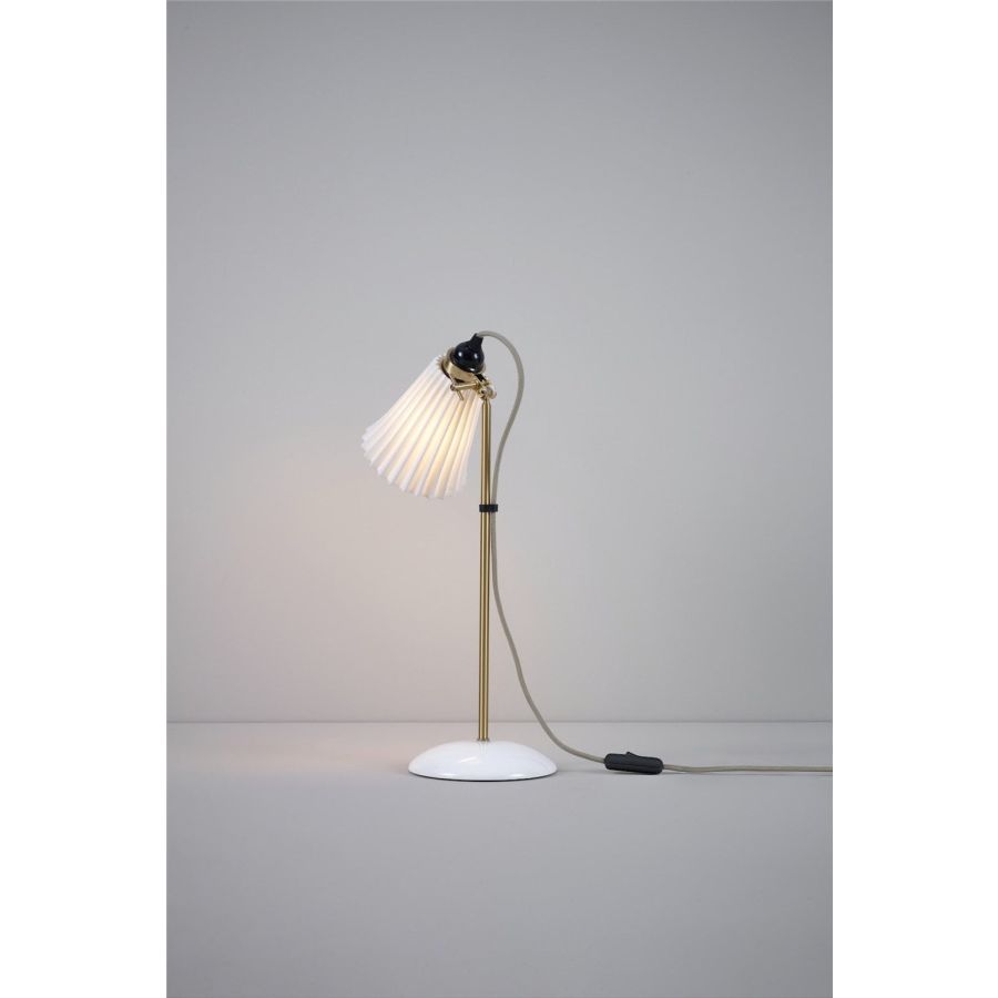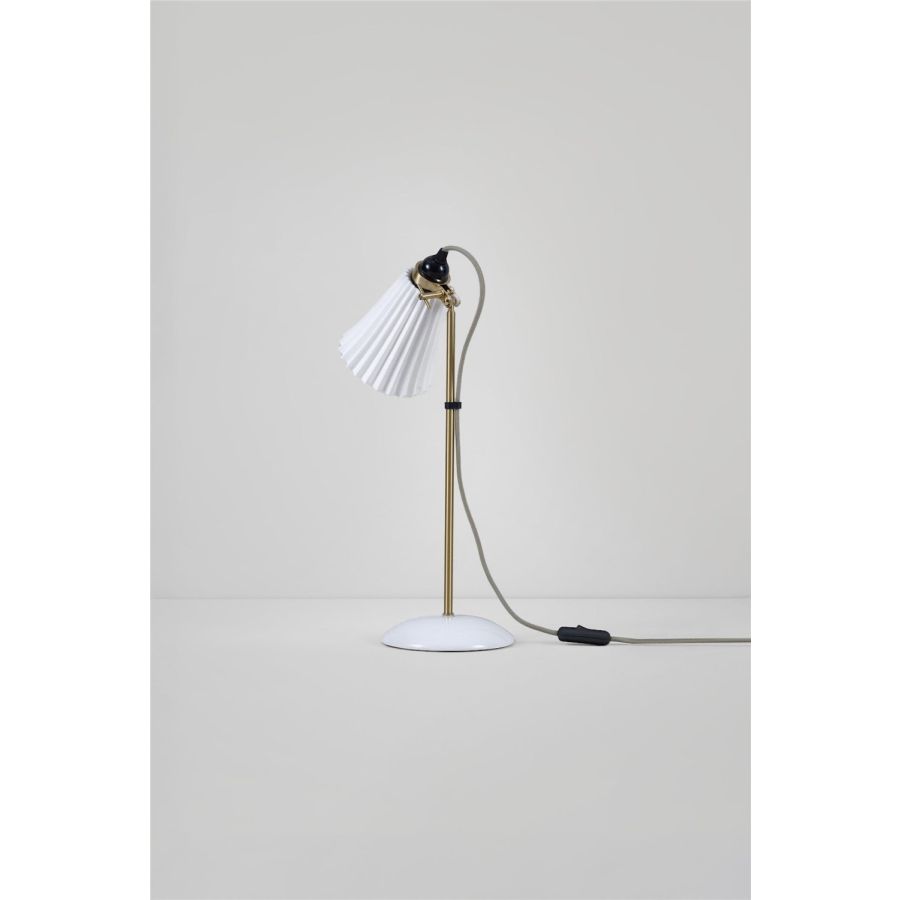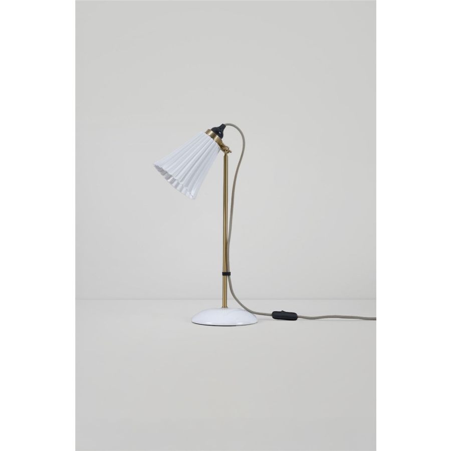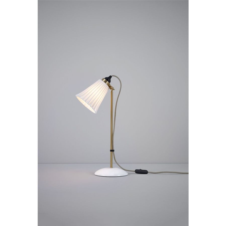 The handmade Hector Medium Pleat Table Light beautifully marries fine bone china with satin brass accents. Its iconic pleated shade exudes elegance, while the glossy bone china finish is gracefully complemented by the satin brass detailing. With its adjustable clamp, you can direct the light precisely where it's desired. The design is enhanced by our signature cotton braided cable in a calm grey hue.