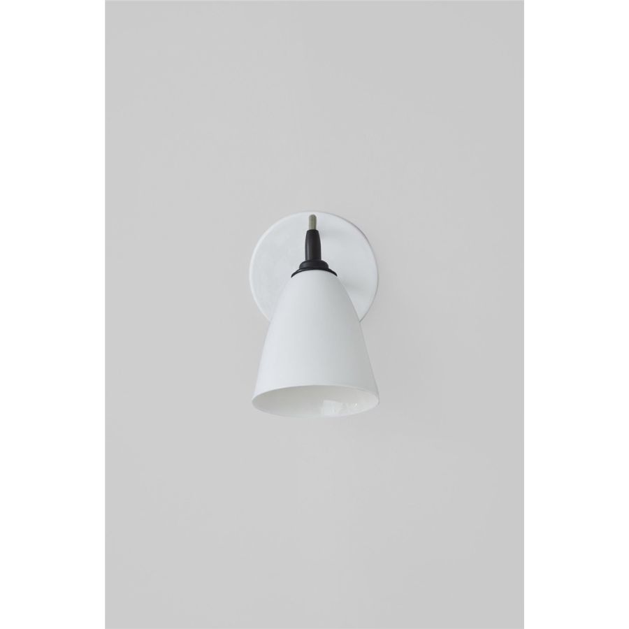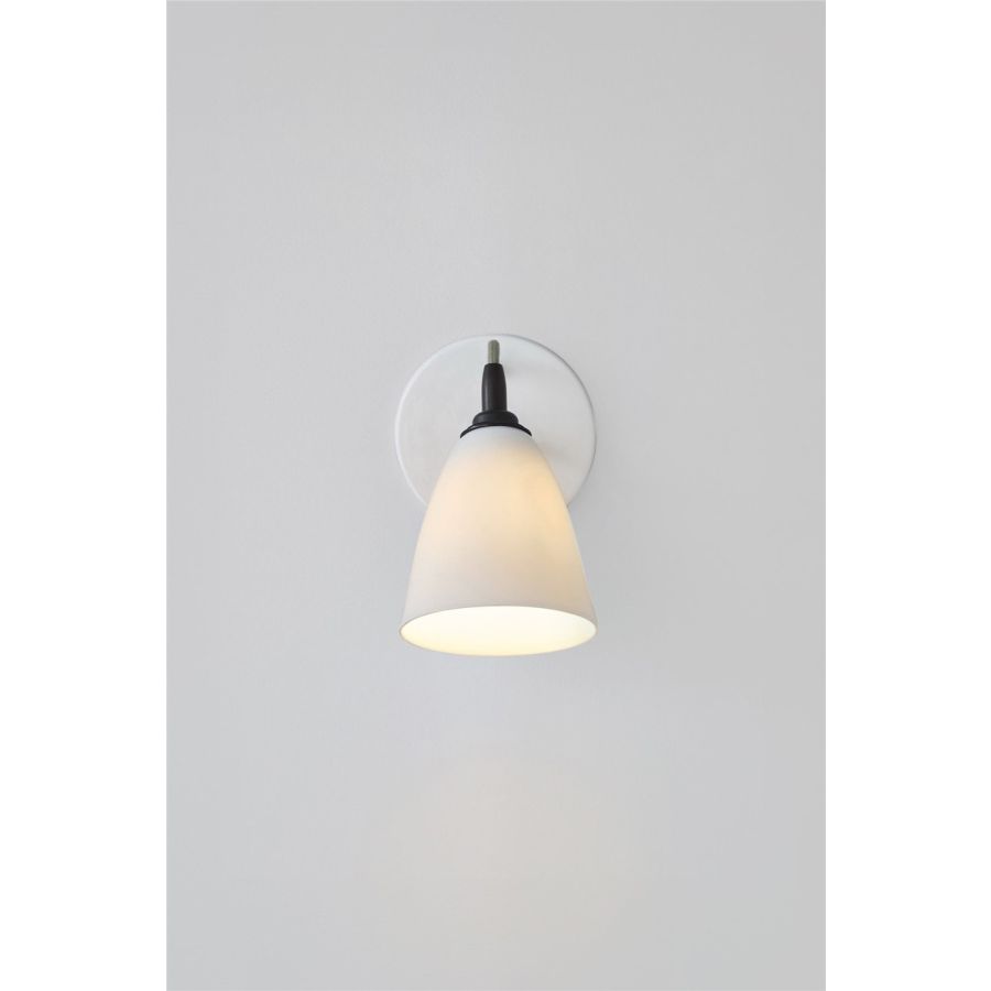 Rich in contrast and personality, our Fector Wall Light has an invigorating effect wherever it is installed. It features our iconic Hector Dome bone china shade in familiar glossy white – neatly offset by a metal stem in a deep black bronze. Mounted on a minimalist white backplate, the design feels understated yet impactful.