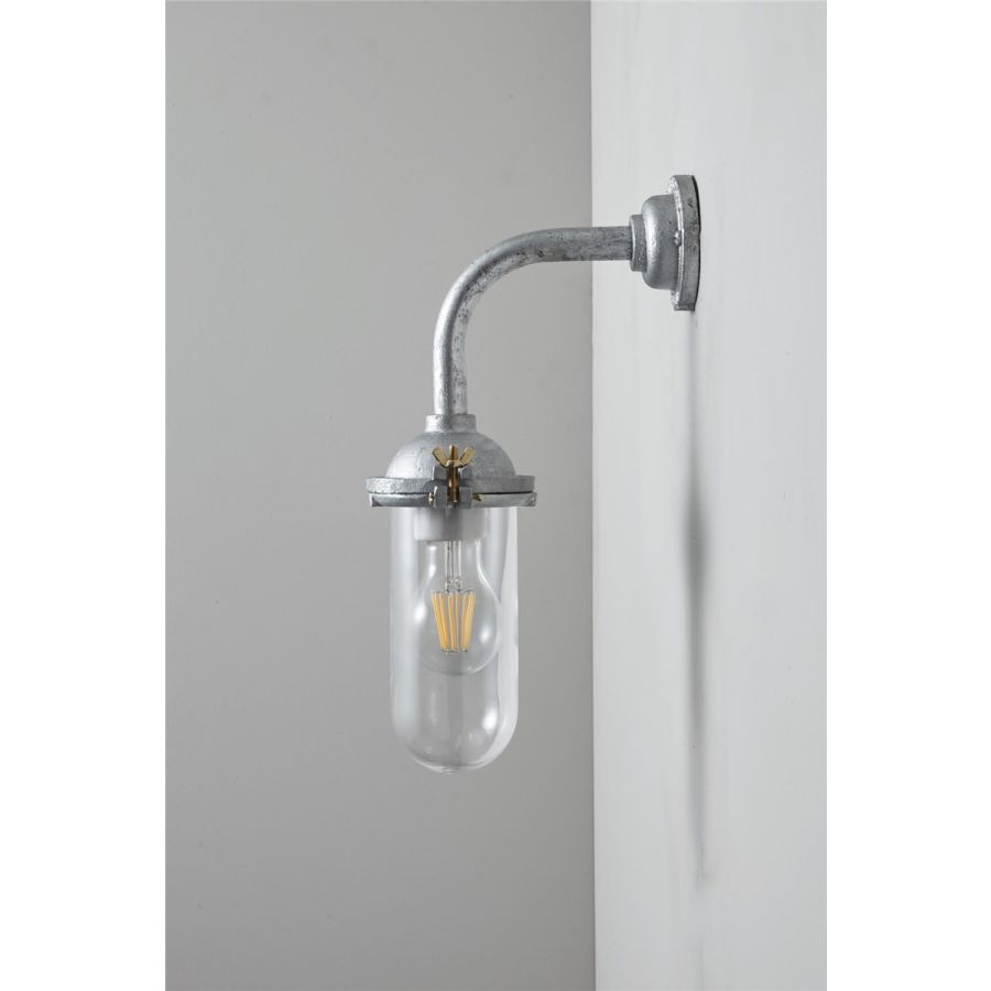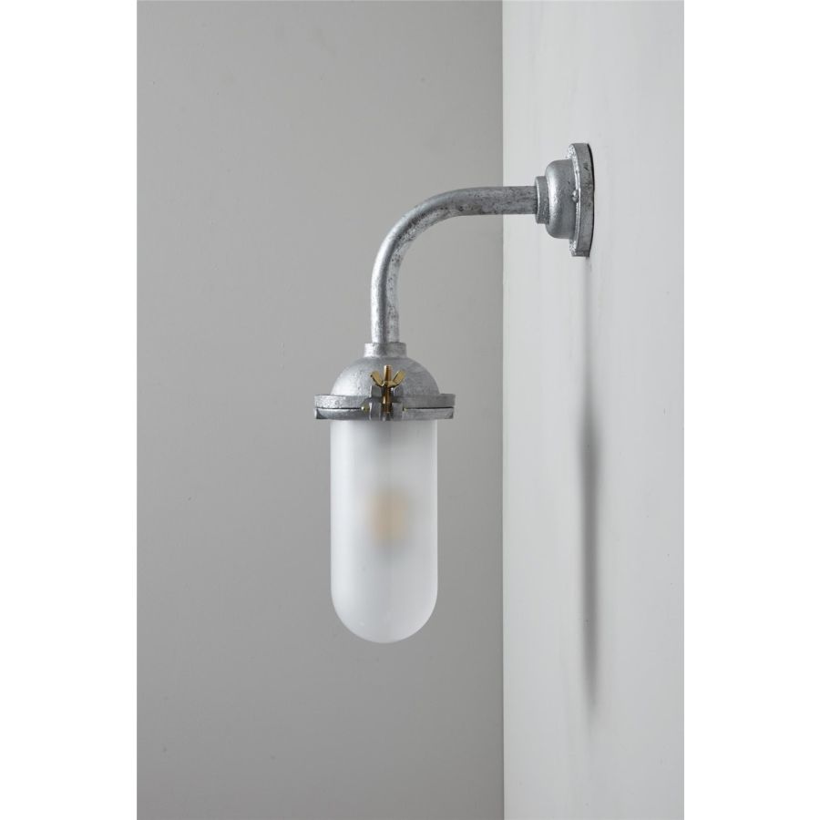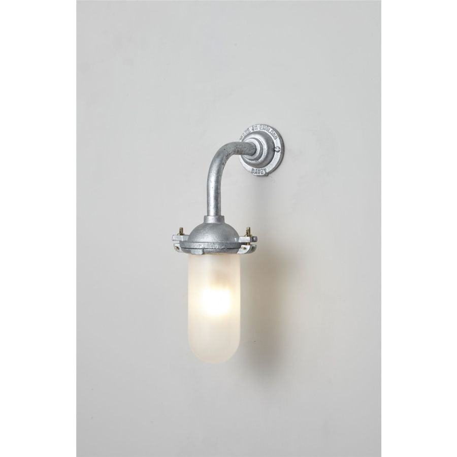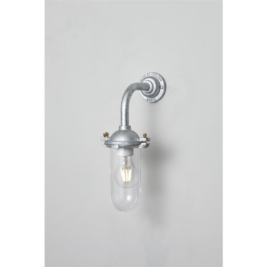 An Exterior Bracket Light with a simple ring that holds the clear or frosted glass fitting. This beautifully simple wall light is available in either galvanised cast iron or sandblasted bronze, and with a canted or right angle arm.