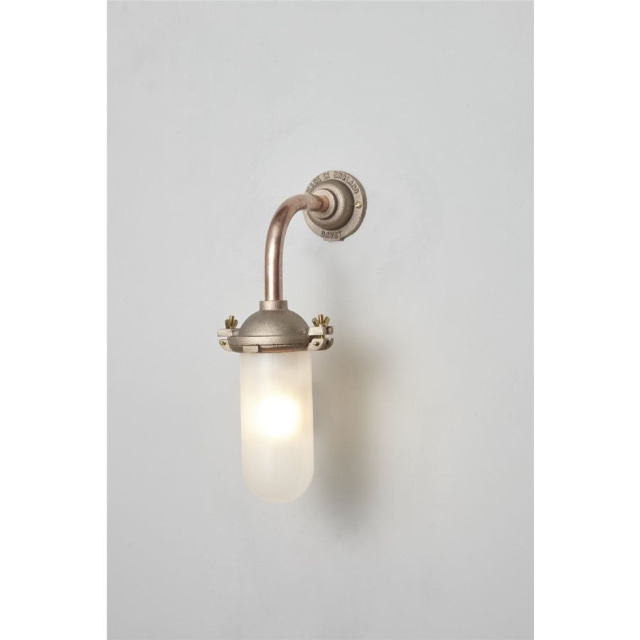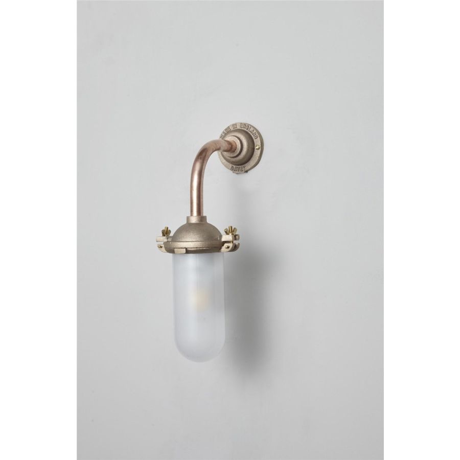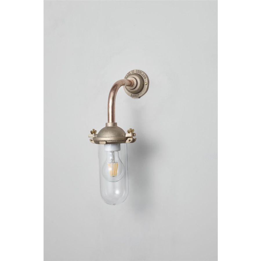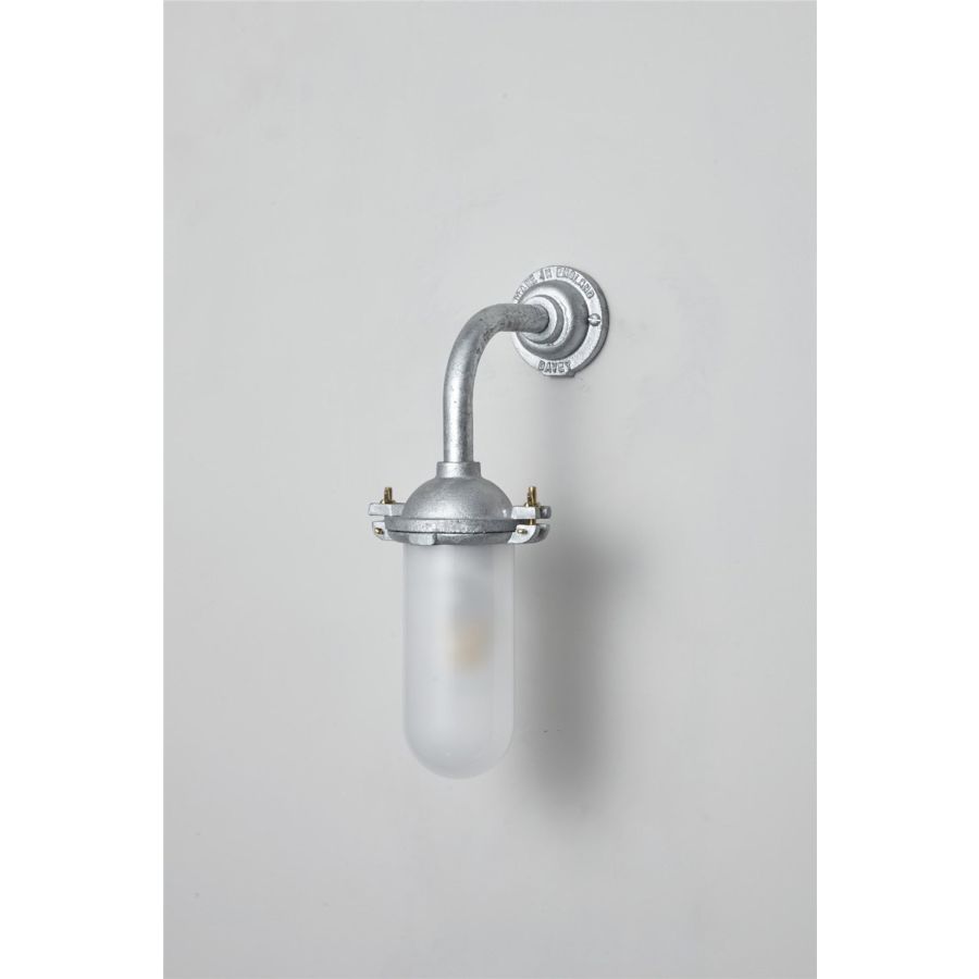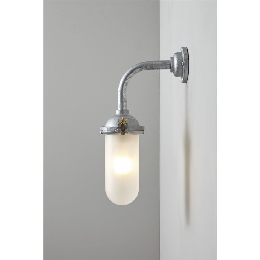 An Exterior Bracket Light with a simple ring that holds the clear or frosted glass fitting. This beautifully simple wall light is available in either galvanised cast iron or sandblasted bronze, and with a canted or right angle arm.