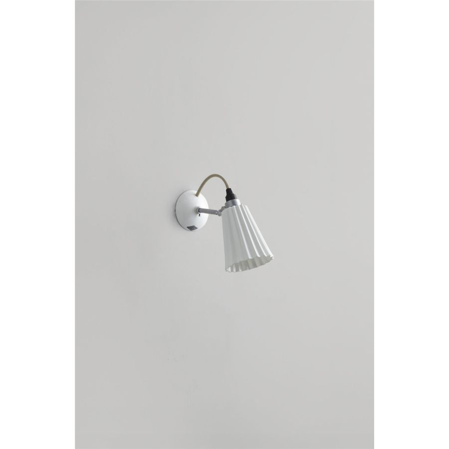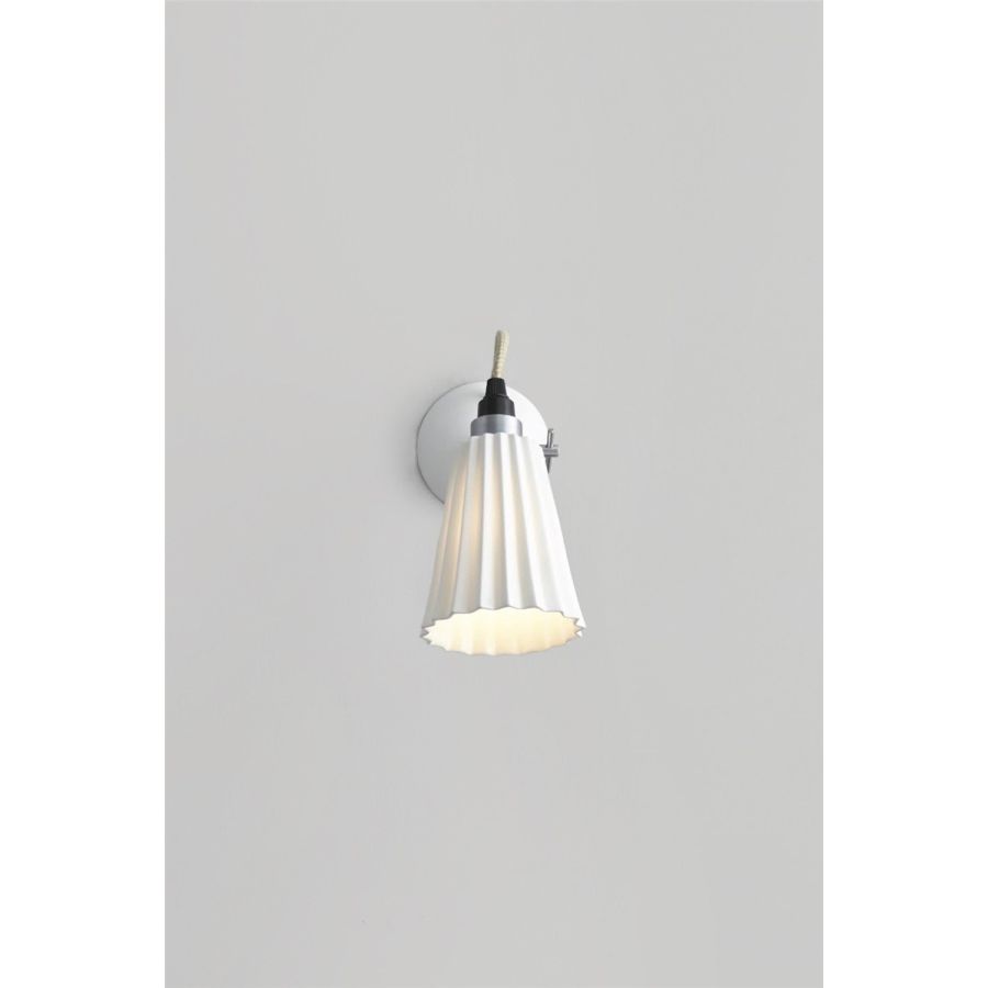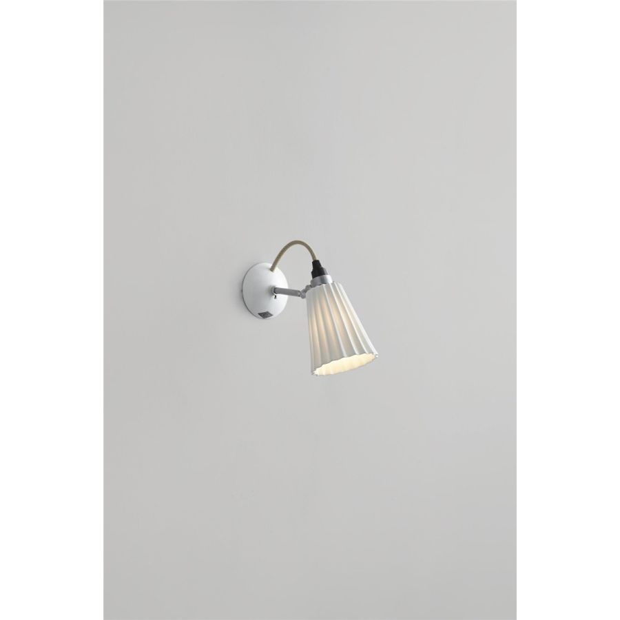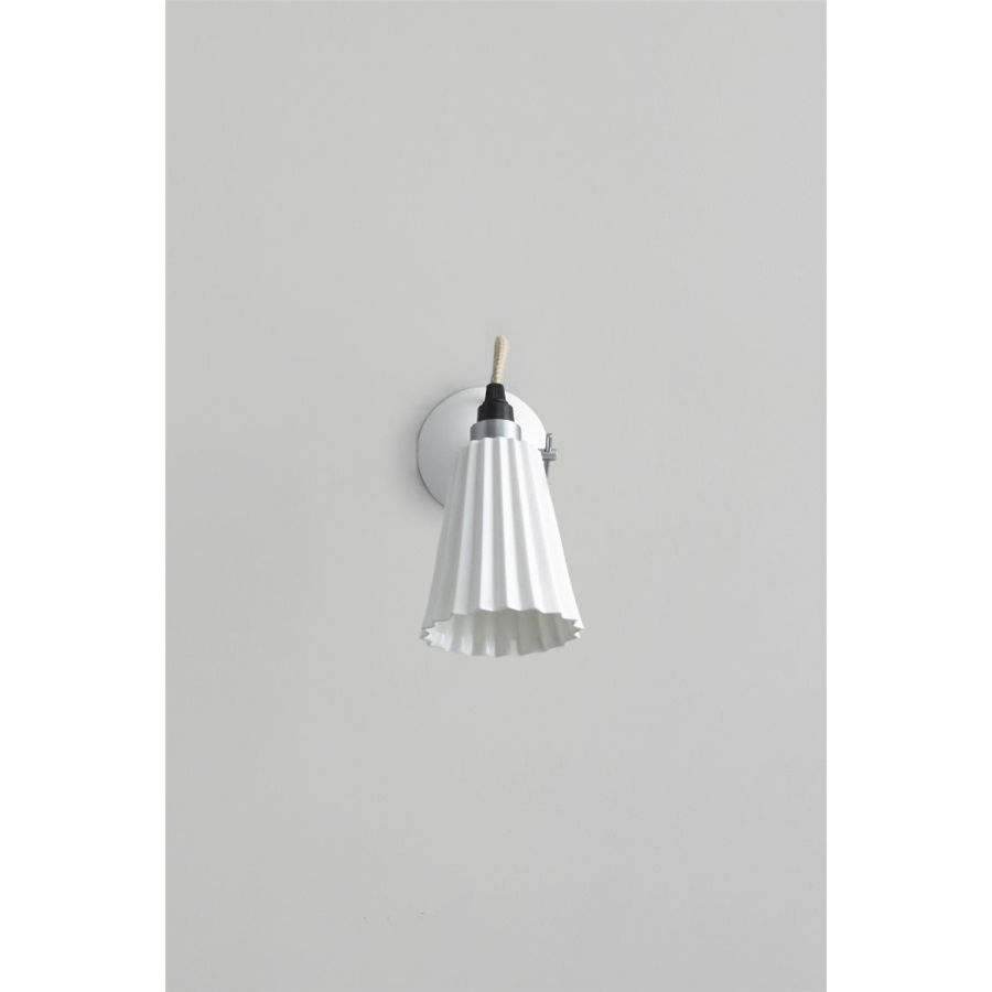 A pleated version of the original Hector design. The architectural shade of the Hector Pleat can be adjusted to focus light exactly where it's needed and is matched beautifully by our signature cotton braided cable. The really is a practical, space-saving wall light. Available in three colours (natural white, light blue and light green) with the option of a switched base.