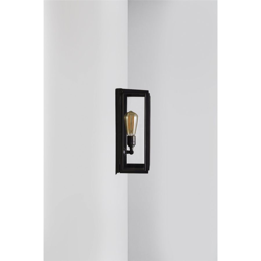 Davey's Box Wall Light in weathered brass is a sophisticated factory inspired fixture. Glass panels with brass beaded frames applied externally to three sides. Removable pins at each side allow access and/or removal of box front. Expertly manufactured at our Oxfordshire metalworks, this product is IP44 rated. Available in two sizes.