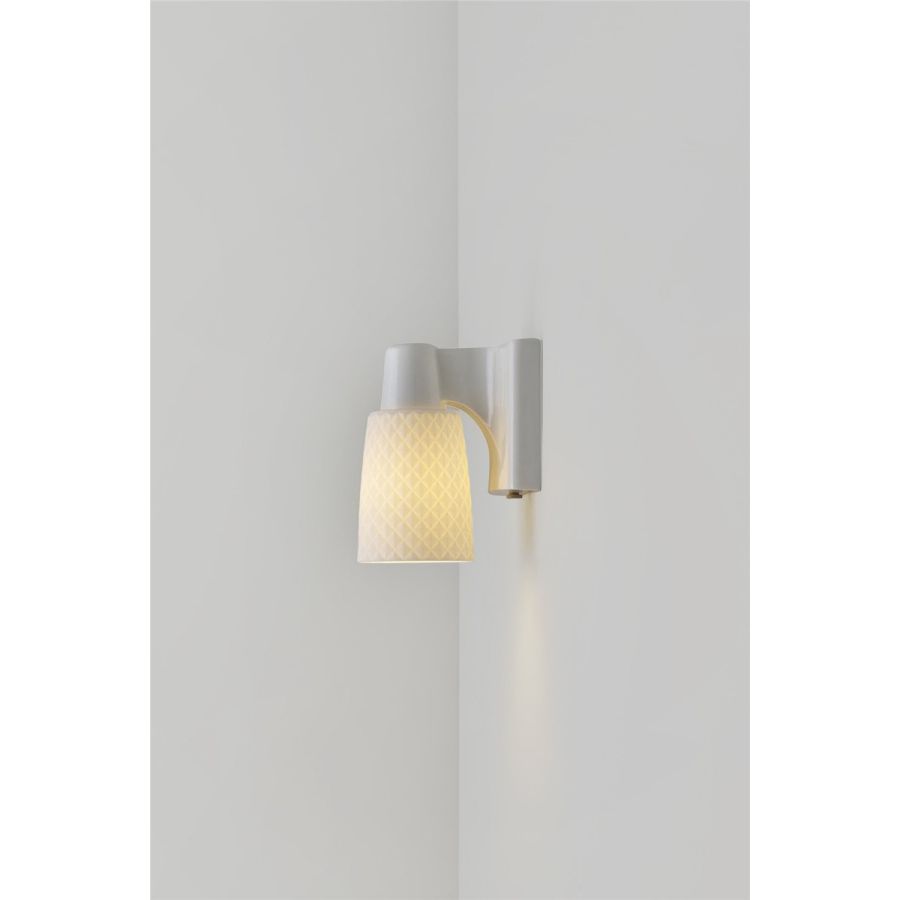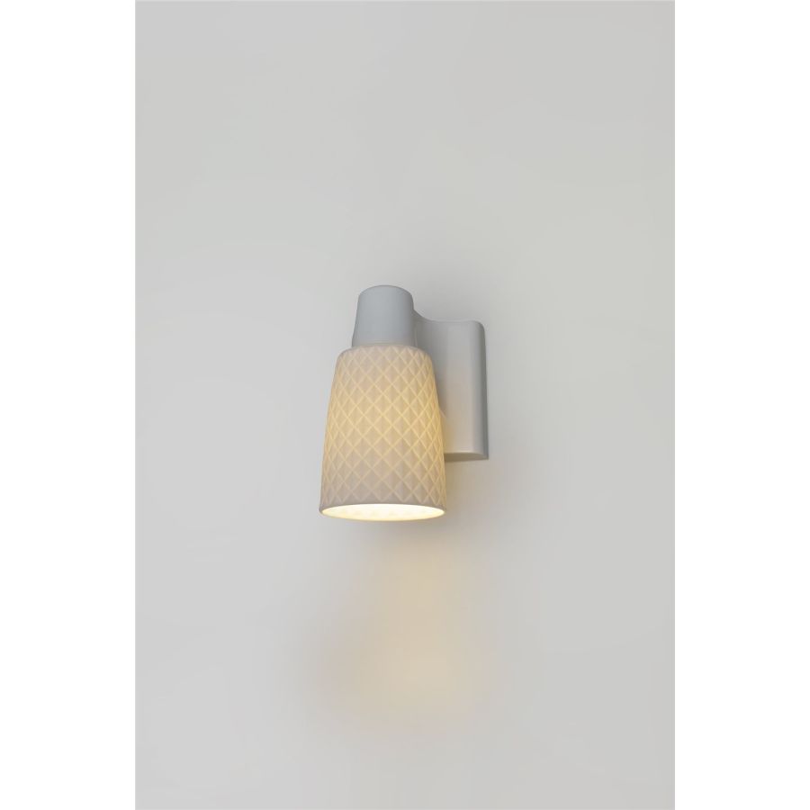 The textural, quilted bone china shade of the Oxford Wall Light not only exudes notable quality but also creates an interesting tonal illumination. Handmade in Stoke-on-Trent, the smooth, ceramic base complements the style beautifully. Choose between a pitched or conical style, this wall light is an attractive option for hallways, bedrooms and kitchens.