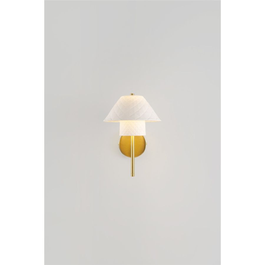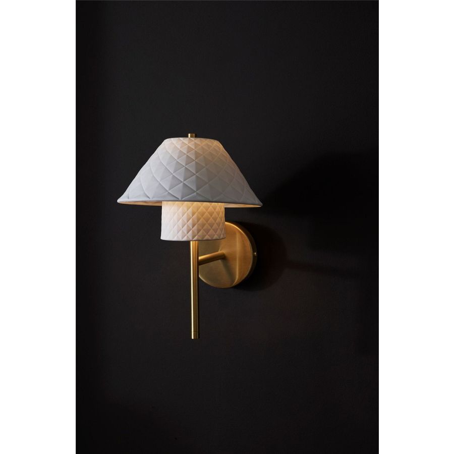Continuing the Oxford collection comes the simple and elegant wall light. Once more the luxurious paired shades with their quilted texture are mounted upon a brushed brass backplate. Emitting a warm, atmospheric glow, the shades come to life when switched on, as the light interacts with crisp lines running across the textured surface.