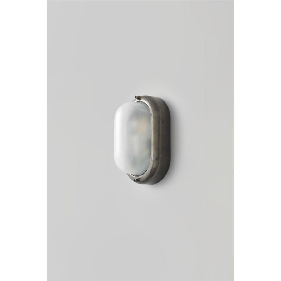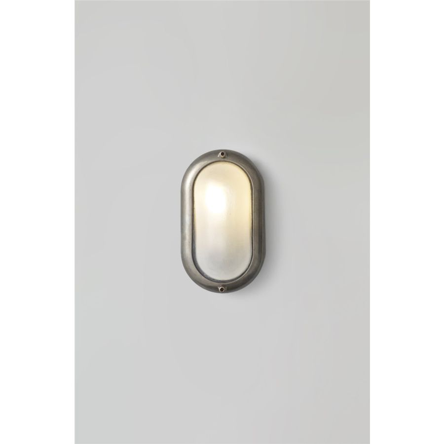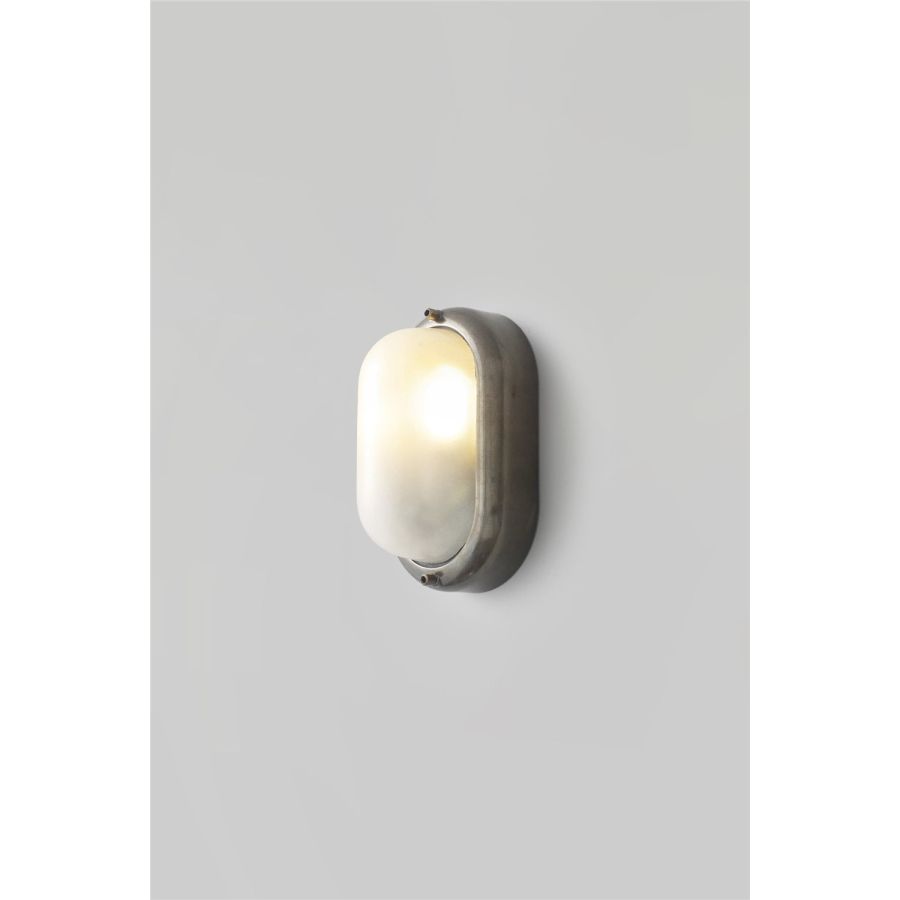 Oval, unguarded bulkhead in aluminium or brass. Frosted glass diffuser. Front bezel secured by stainless steel socket head screws. Rear cable entry. Through backplate fixing.