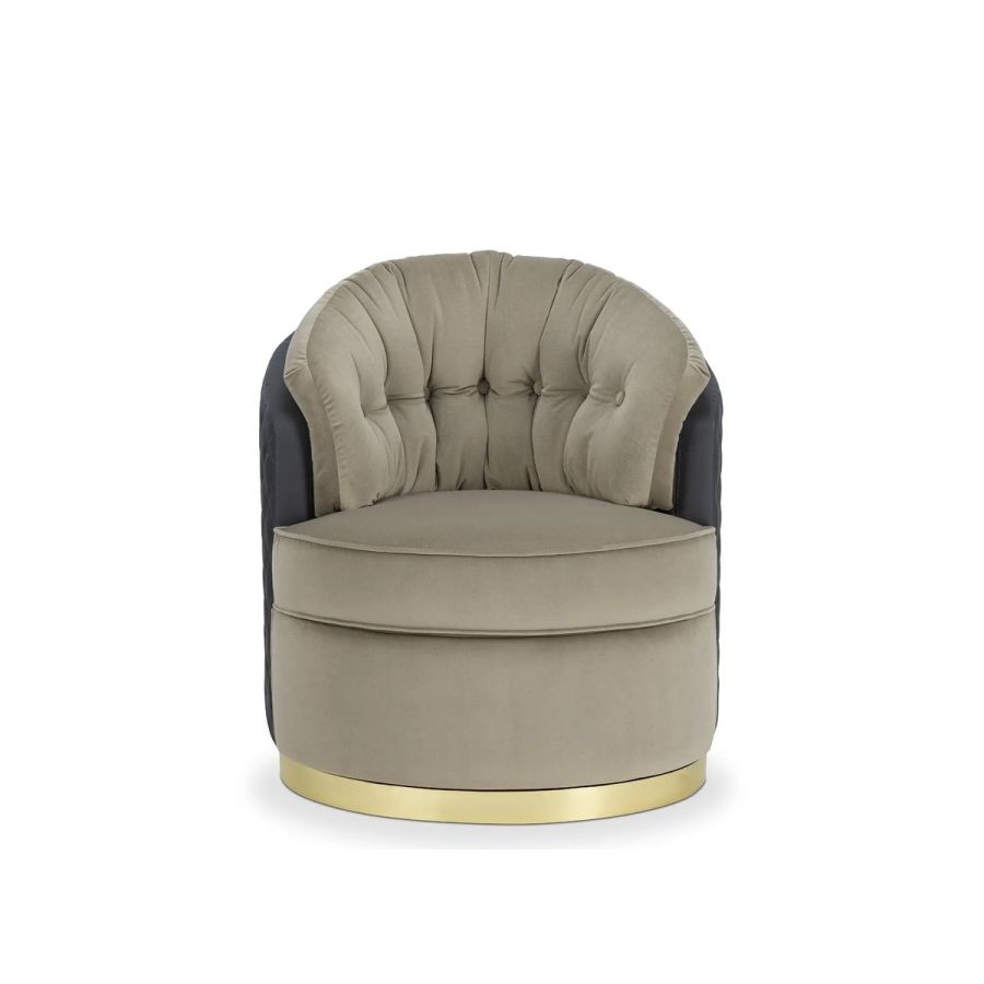The Otto Swivel Armchair boasts a distinctive rounded shape that offers both comfort and style. With a luxurious mid-century design and the use of premium materials, including leather, velvet, and brass, this armchair is a timeless addition to any living space, whether for a residential project or a hospitality setting. Expertly crafted by skilled artisans, it exudes a level of quality and craftsmanship that is sure to impress, and its swivel feature adds to its functionality.
