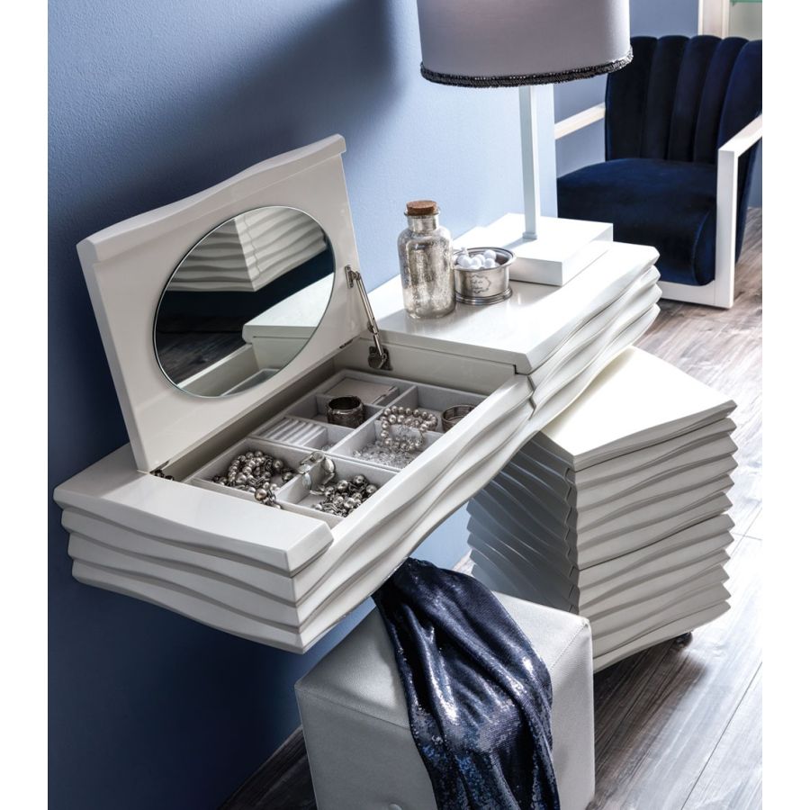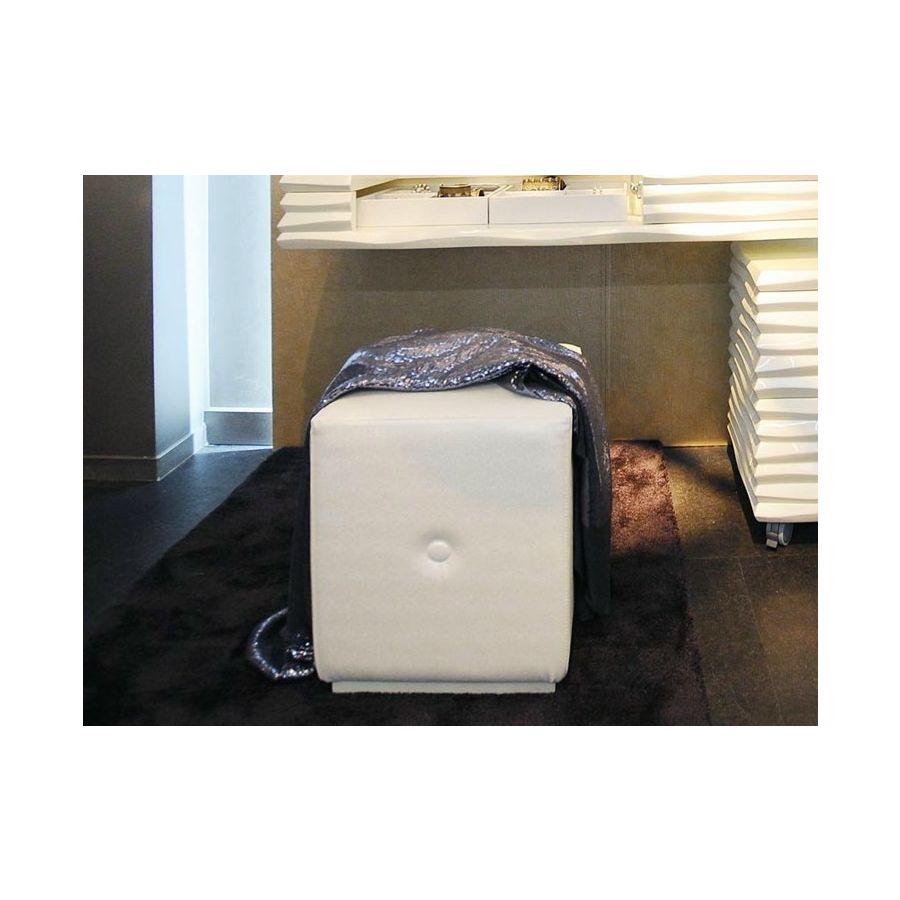 Padded poufupholstered in fabric, leather or eco leather, with a precious ornamental iron button on five sides, available in a large choice of finishings.Ebon poufis the ultimate as an addition to console tables or dressing tables in modern or contemporary settings.