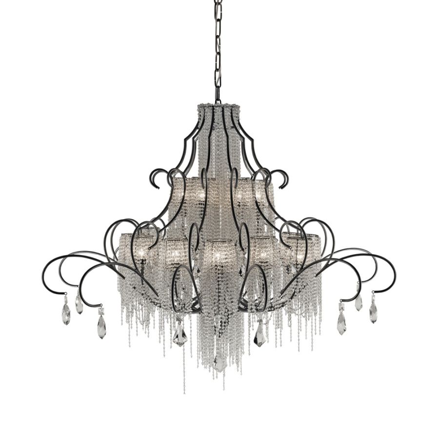 The strings of crystals are exclusively transparent and enriched by irregular elements of different shapes. A coup de theatre of great effect.