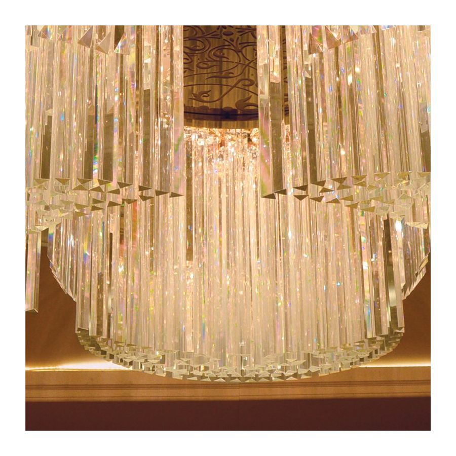 Rods in optical crystal with a triangular section, perfectly shaped for an impeccable effect of light and brightness.