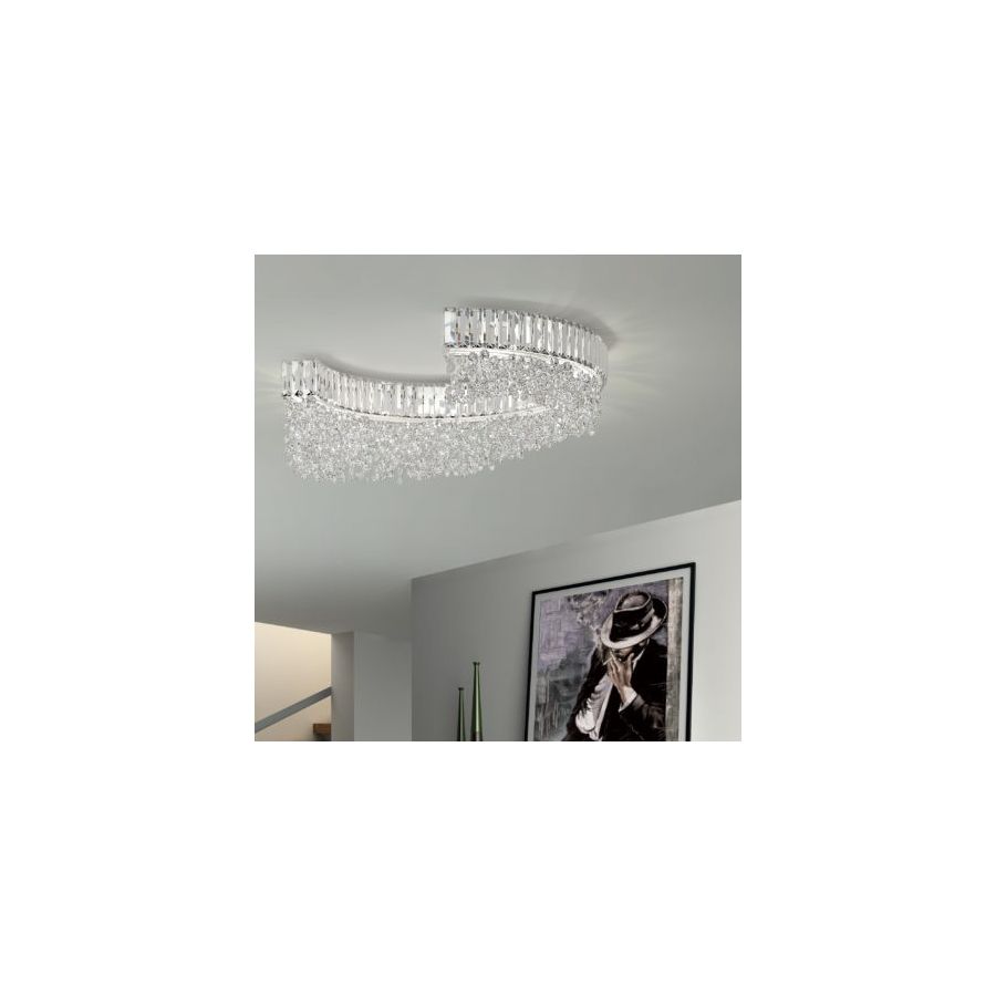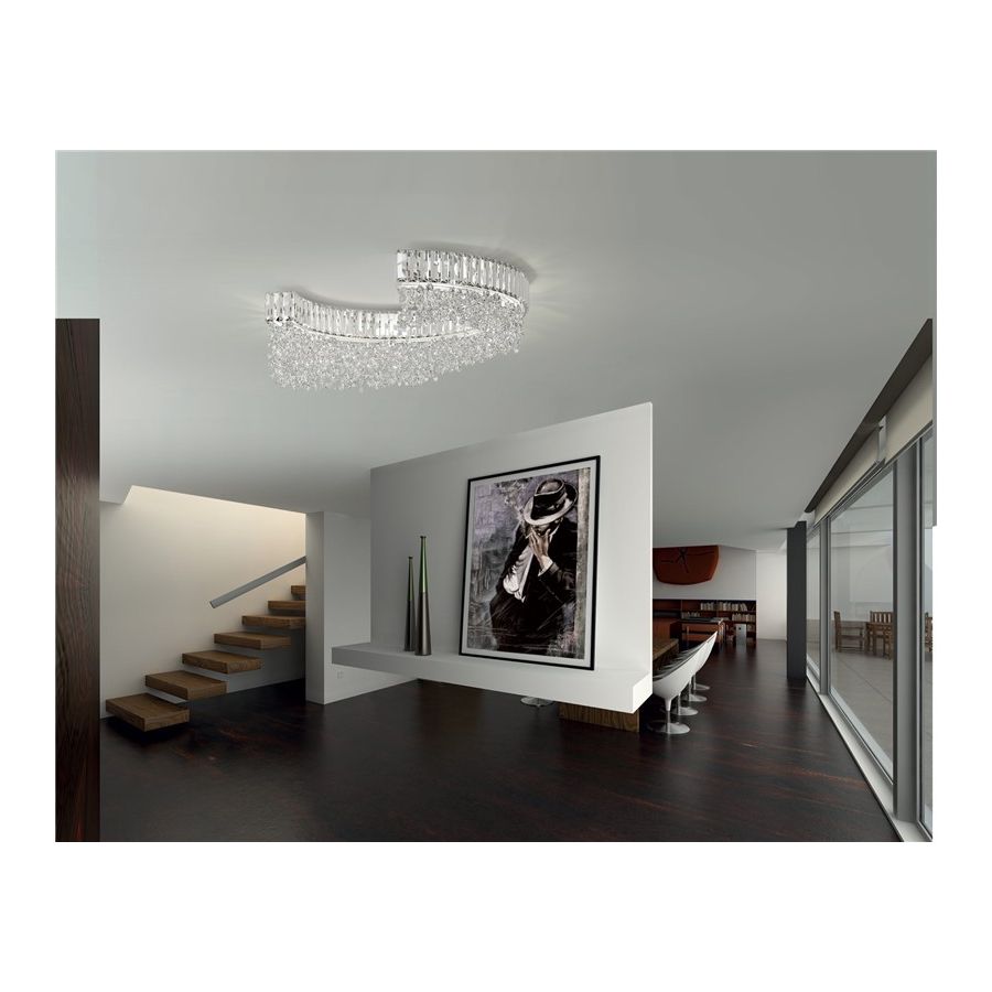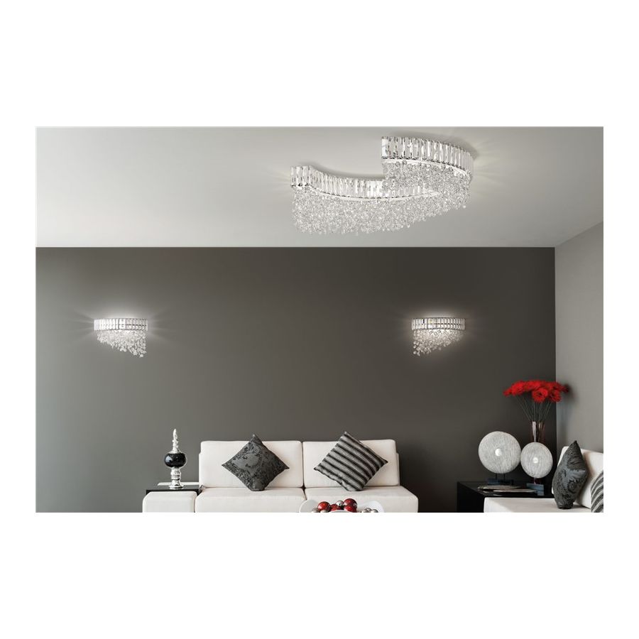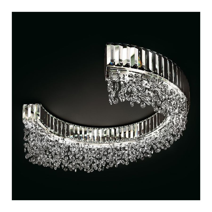 Scenic semicircular ceiling light with clear or coloured crystal pendants. Available in different sizes and finishes.