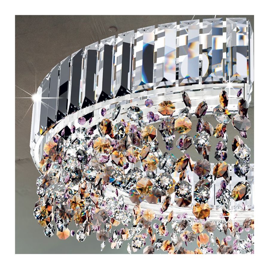 Band made of ultra-pure crystal hand-ground lozenges, pendants formed by octagons of different sizes and mixed colors such as clear, amber, pink and smoked.