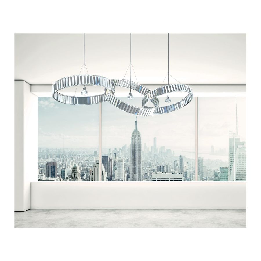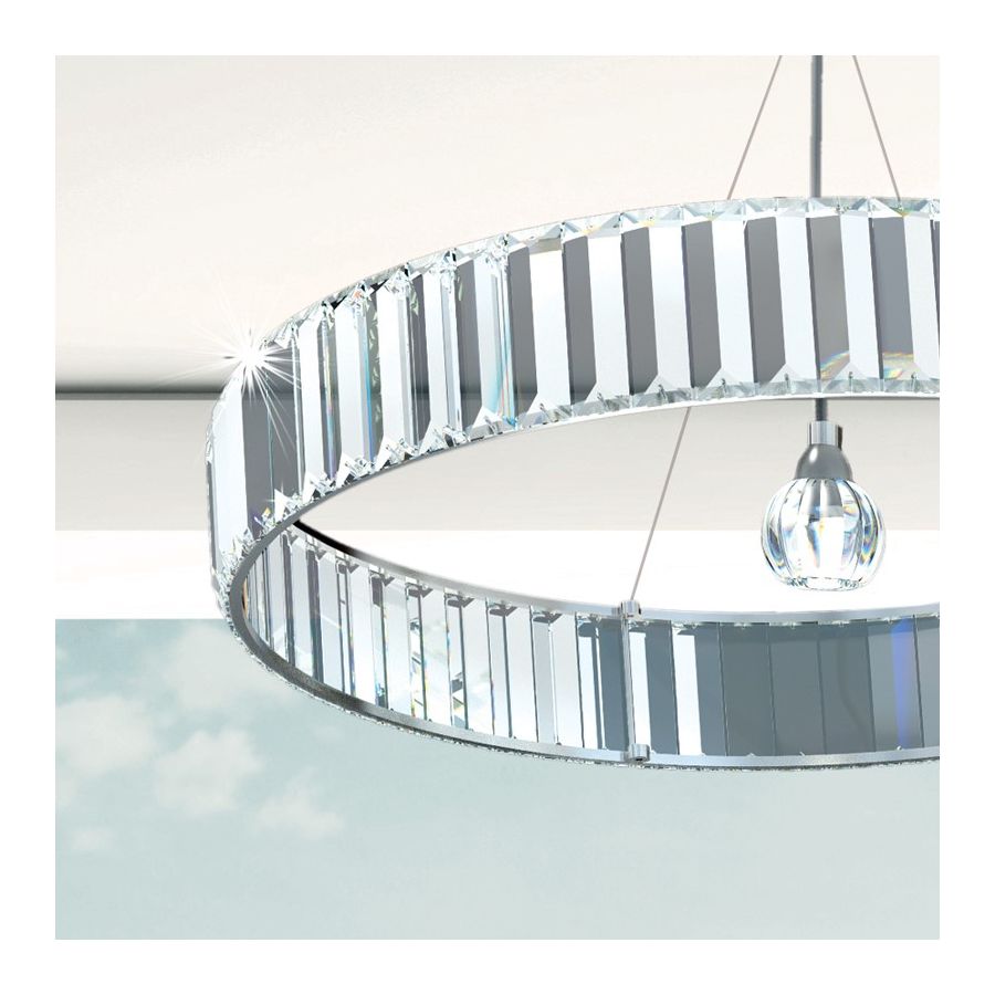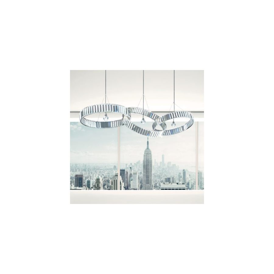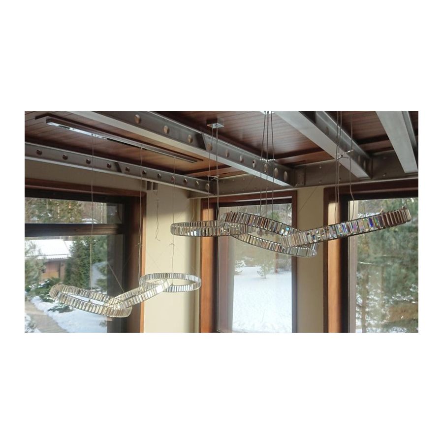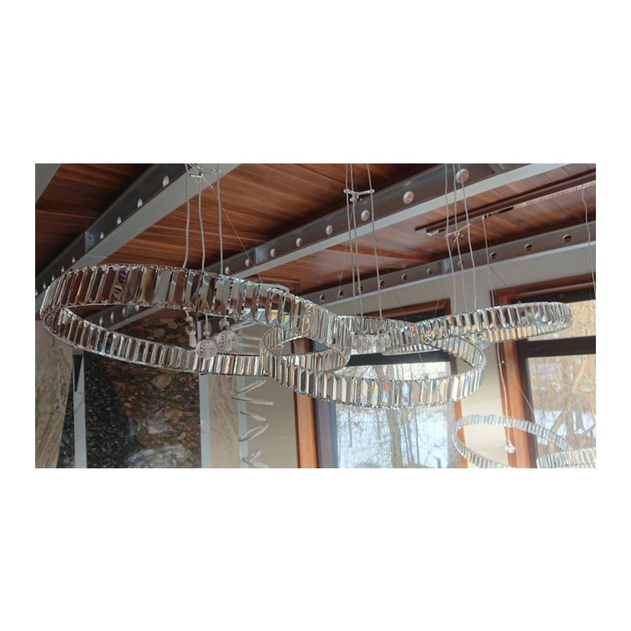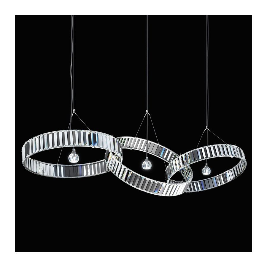 Design pendant with linkable rings made of hand-ground pure crystal. Precious and modern chandelier.