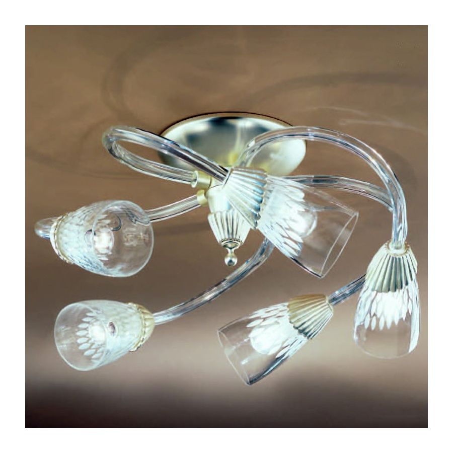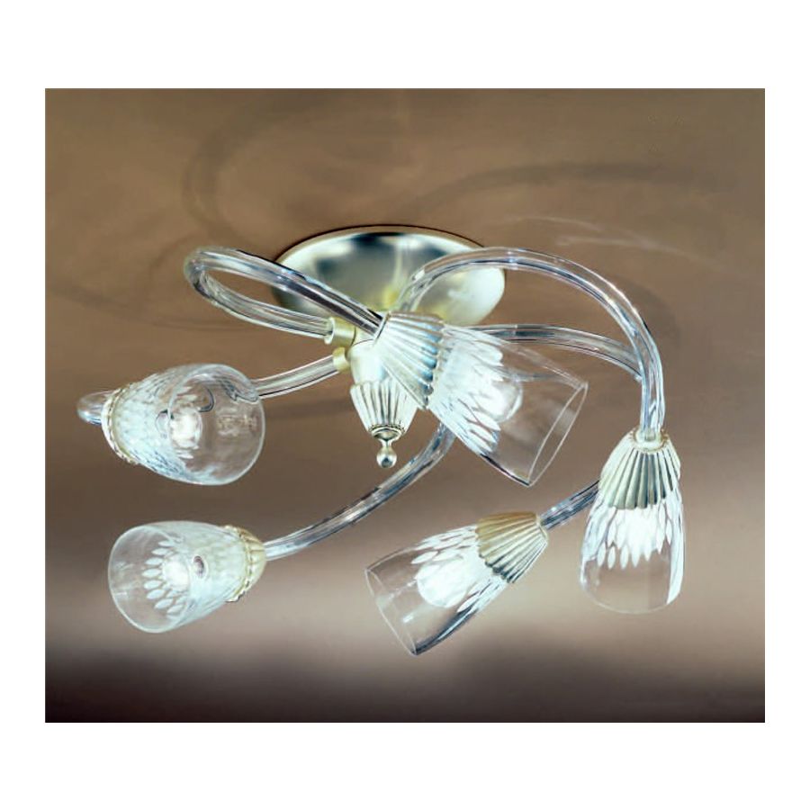 Ceiling lamp with wide arms made of murano glass available in two colours and crystal bobeches.