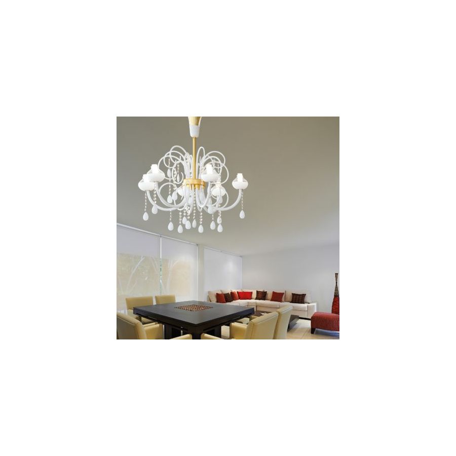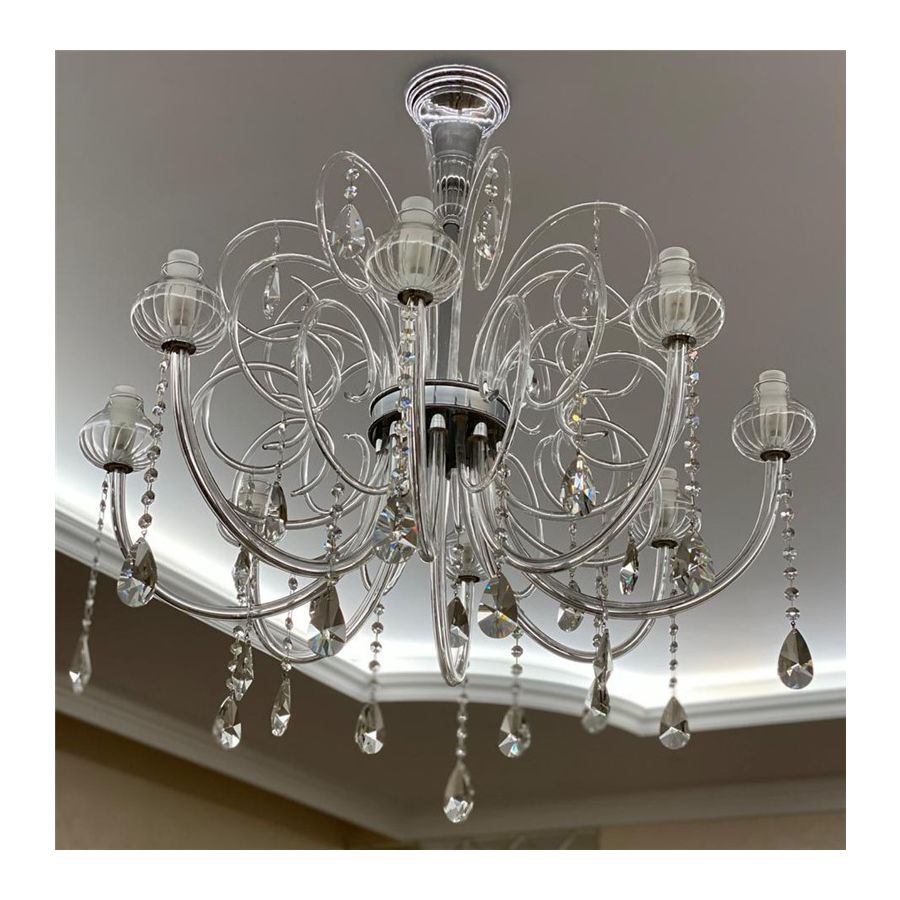 Classic chandelier with murano glass croziers and multifaceted crystal pendants. Venetian craftsmanship.
